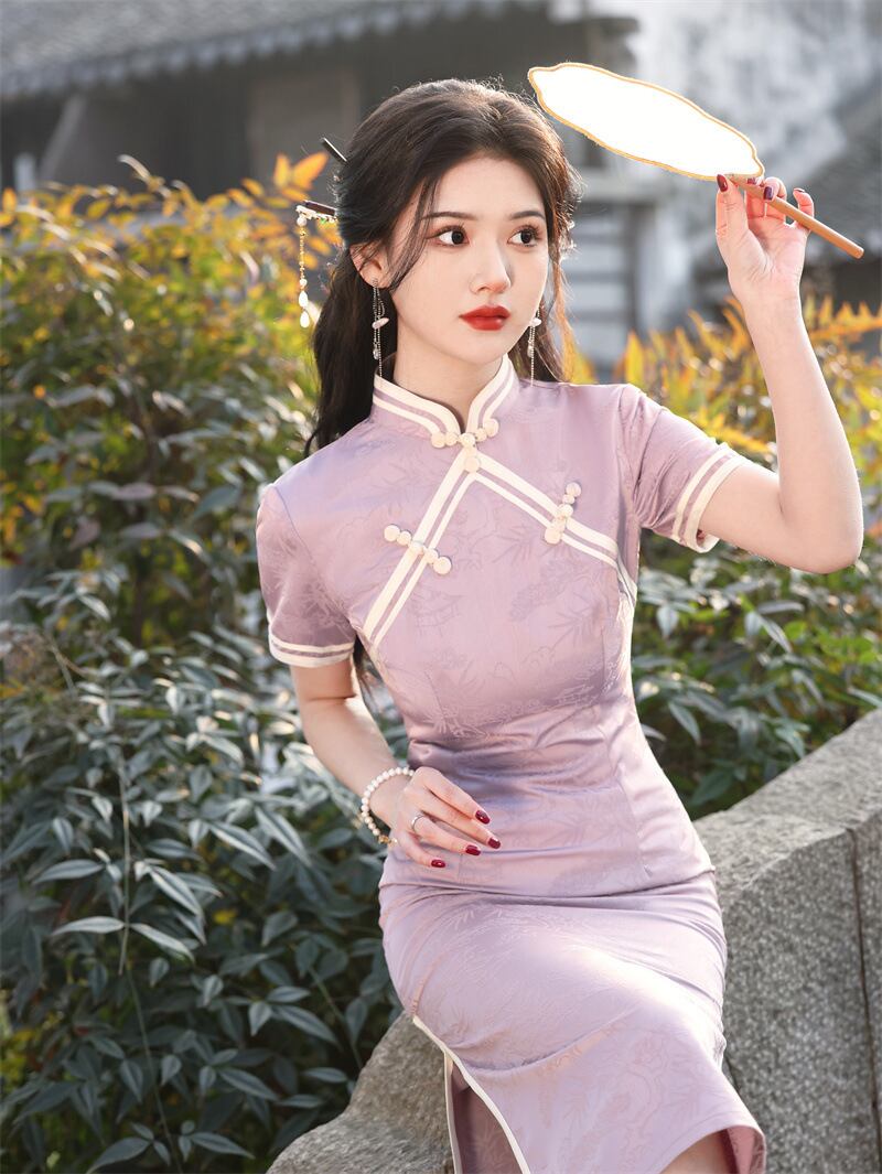 パープル チャイナドレス チャイナ風服 改良型チャイナドレス 洋服 かわいい