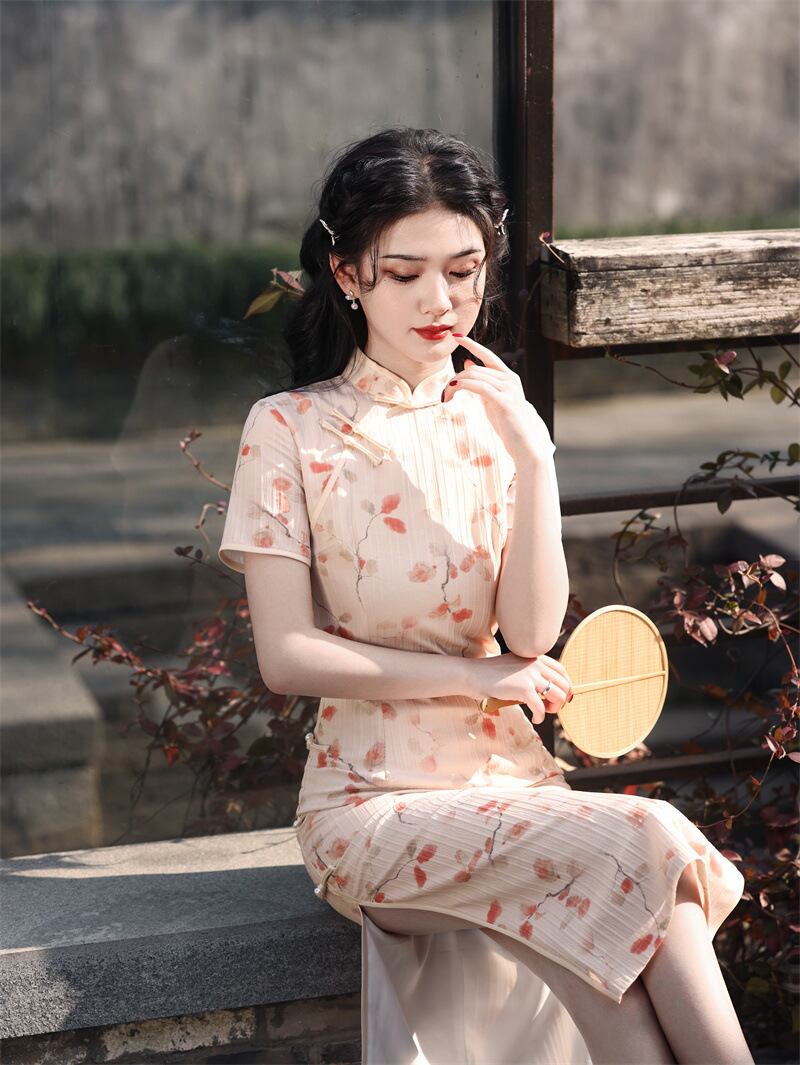 ピンク チャイナドレス 半袖 チャイナ風服 改良型チャイナドレス かわいい