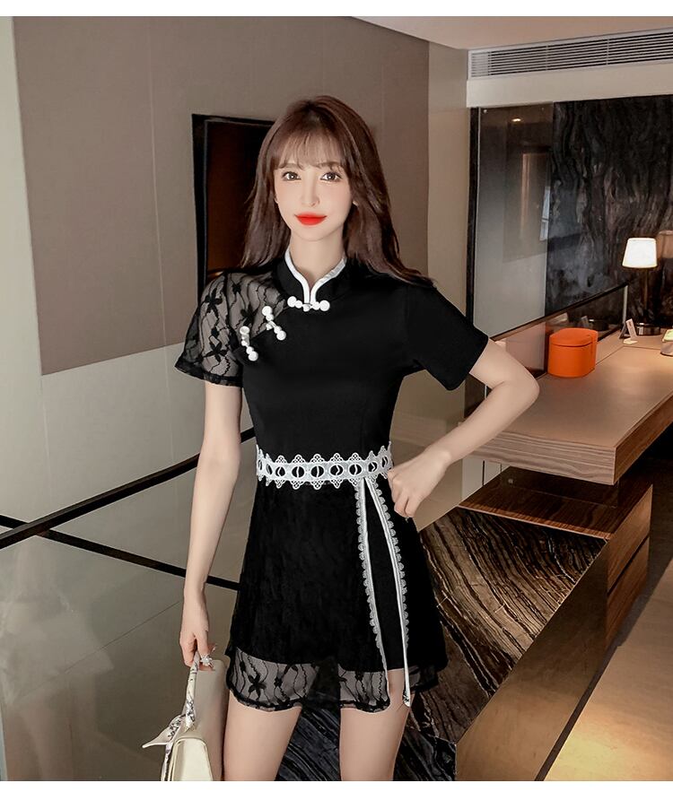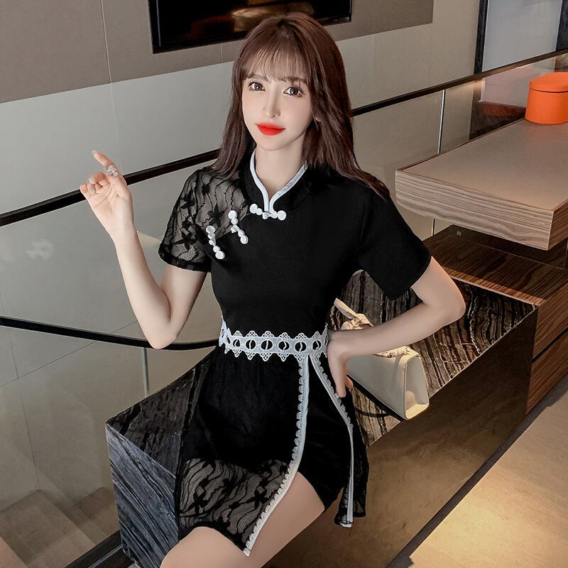 かわいい チャイナ風ワンピース + ホットパンツ 二点セットアップ 改良型チャイナドレス チャイナ風服 チャイナボタン