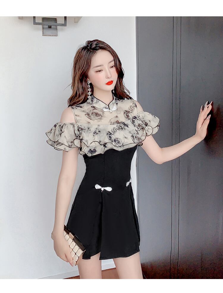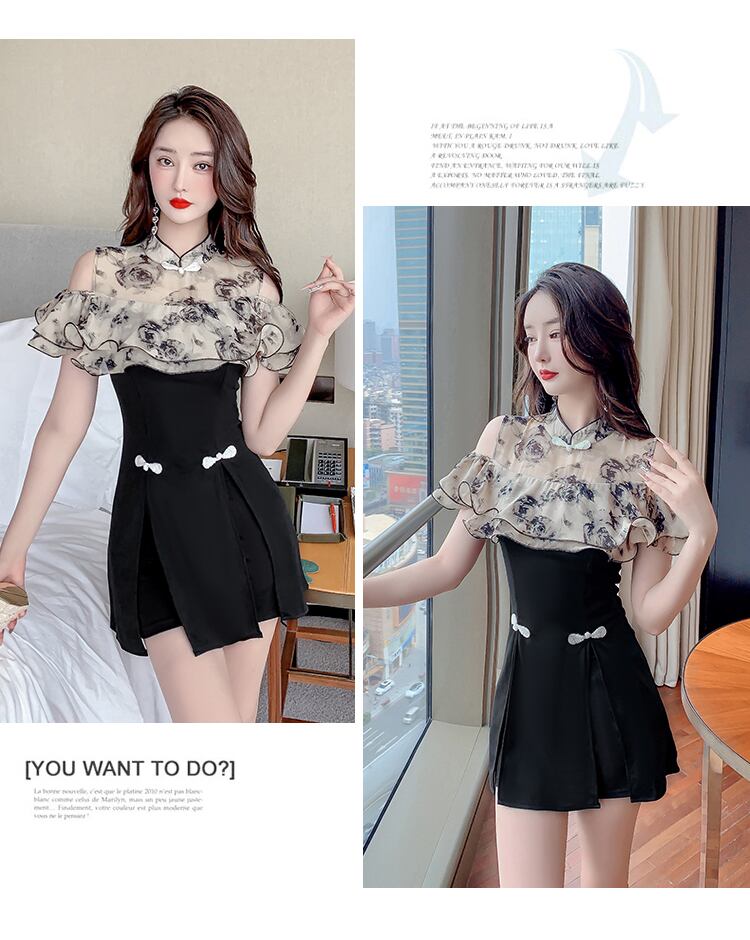 チャイナ風ワンピース + ホットパンツ 二点セットアップ 改良型チャイナドレス チャイナ風服 チャイナボタン