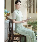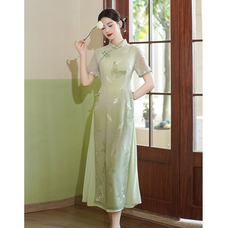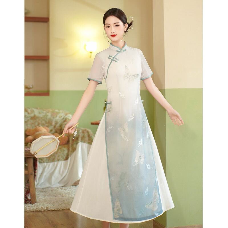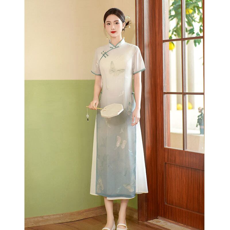 アオザイ 2色選択可 スタンドネック 民族服 改良チャイナドレス 着心地抜群 大きいサイズ