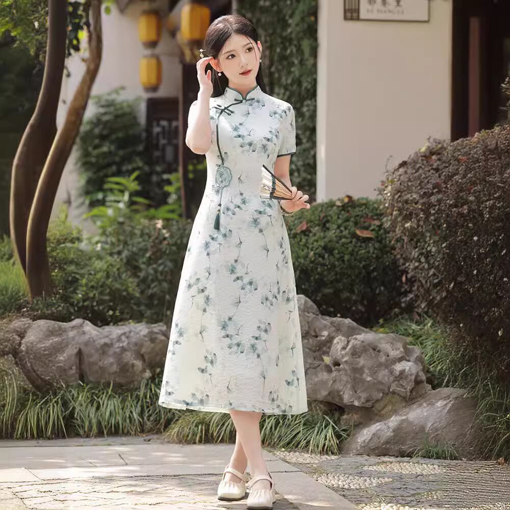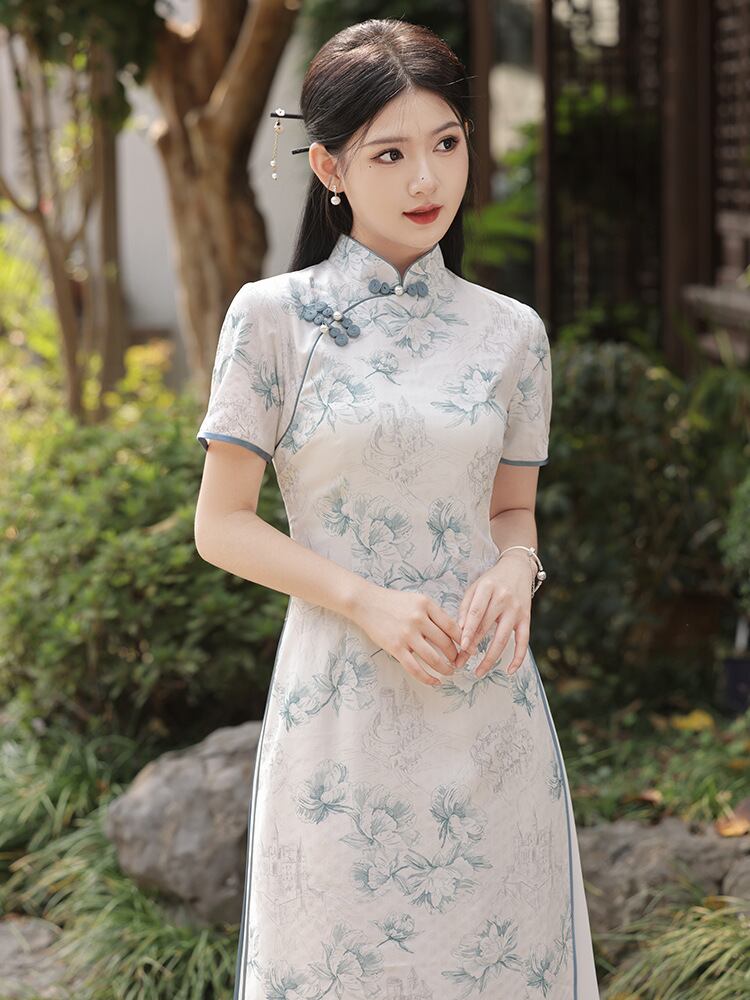 エレガント アオザイ スタンドネック プリント 民族服 改良チャイナドレス 着心地抜群 大きいサイズ