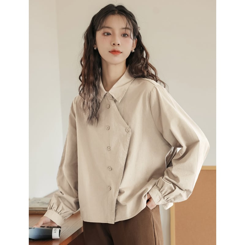 2色 シンプル ブラウス 長袖 ルーズ 合わせやすい
