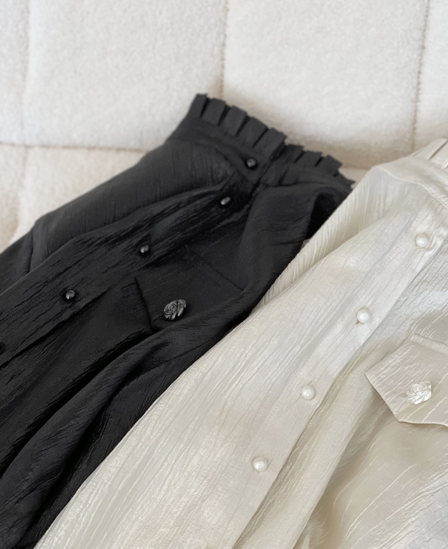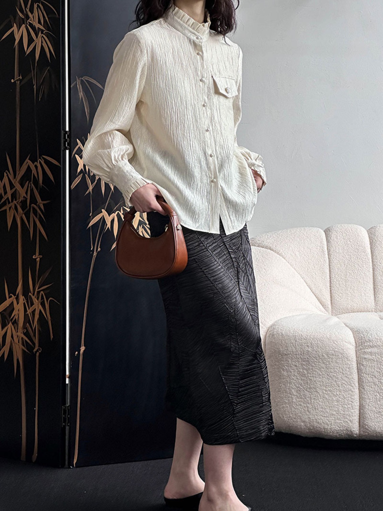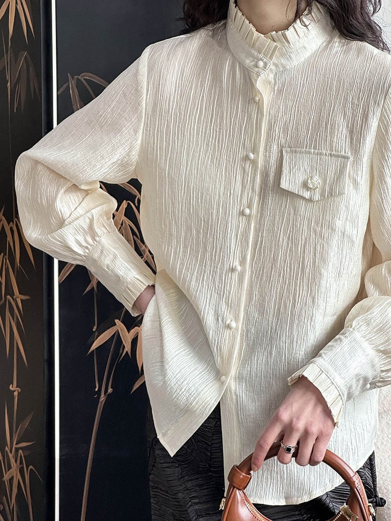 エレガント ブラウス 2色 スタンドネック 長袖 オリジナル デザイン