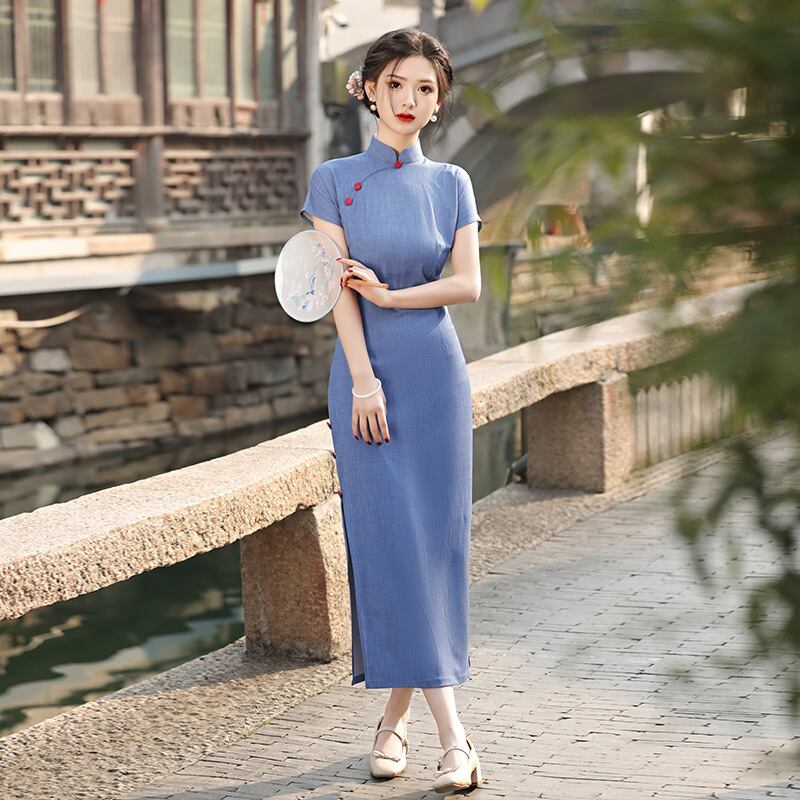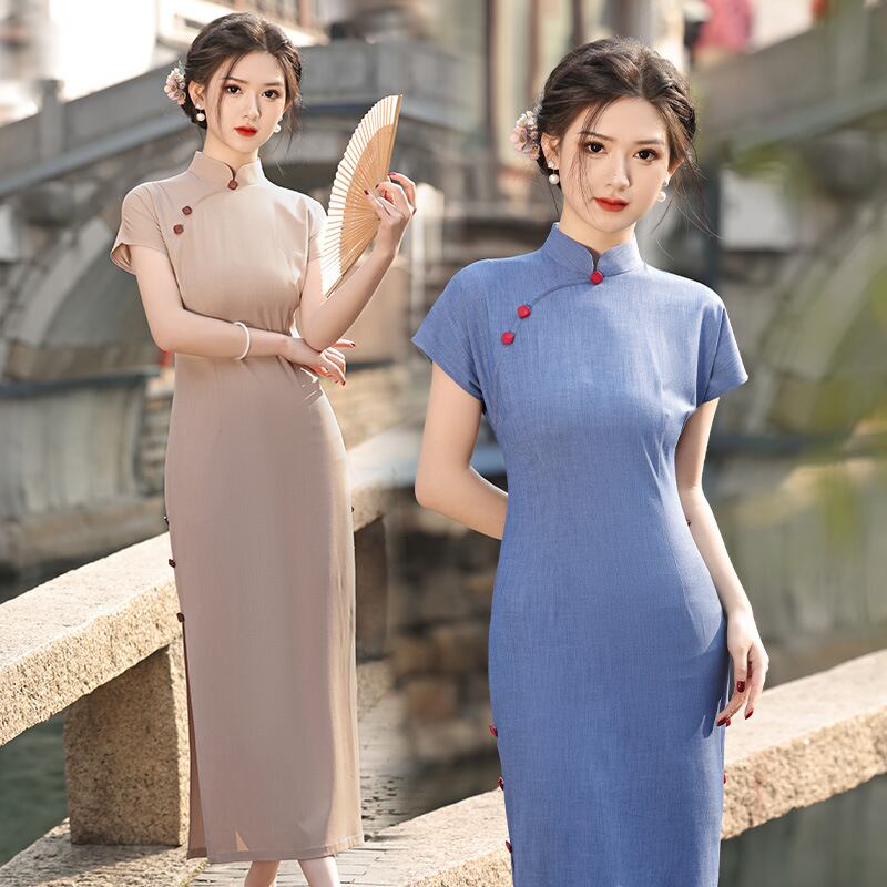 エレガント チャイナドレス 2色 半袖 チャイナ服 改良型チャイナドレス オリジナル