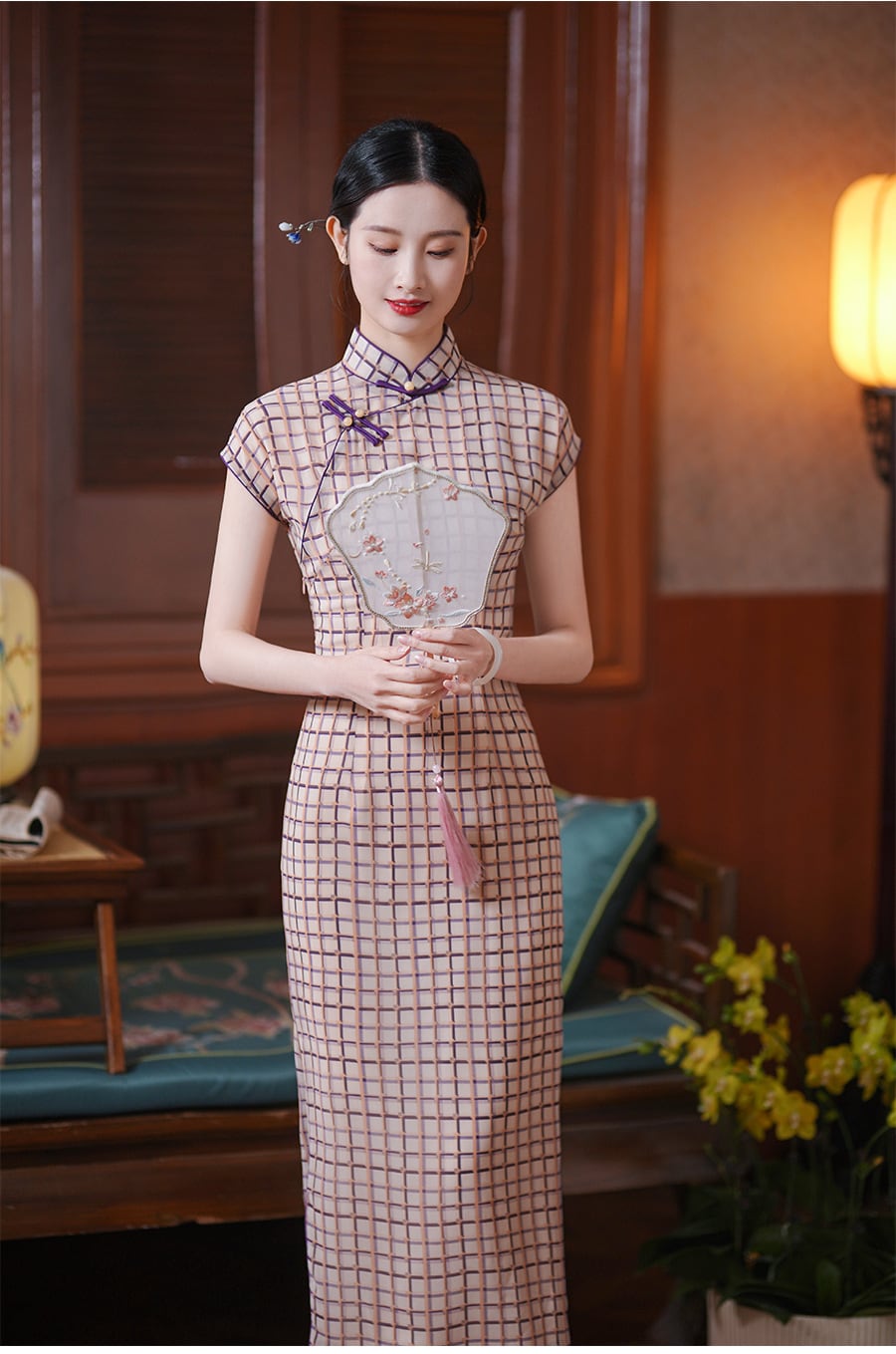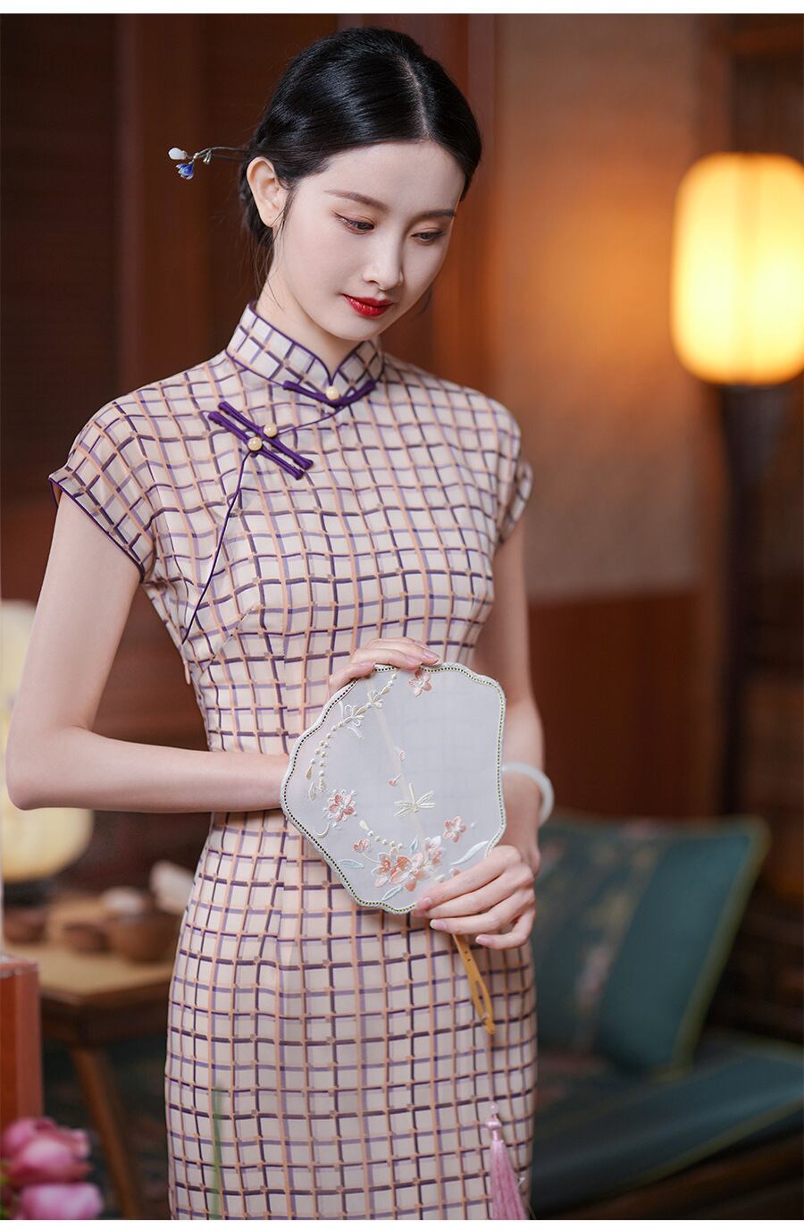 チェック柄 チャイナドレス 半袖 チャイナ風服 改良型チャイナドレス かわいい オリジナル