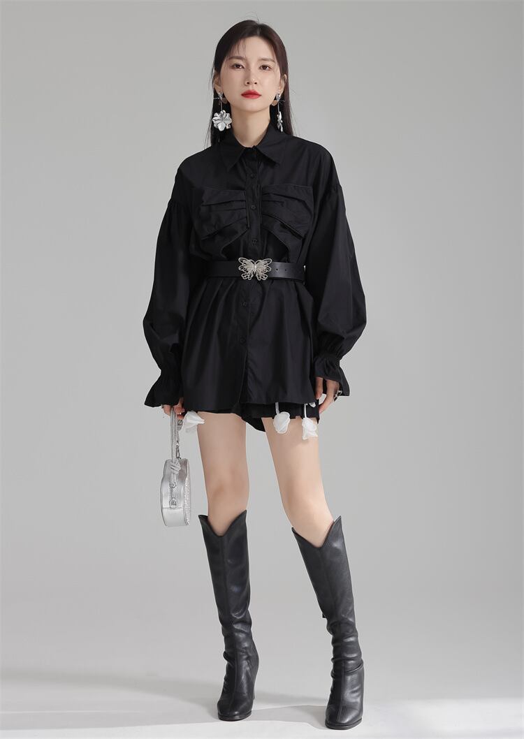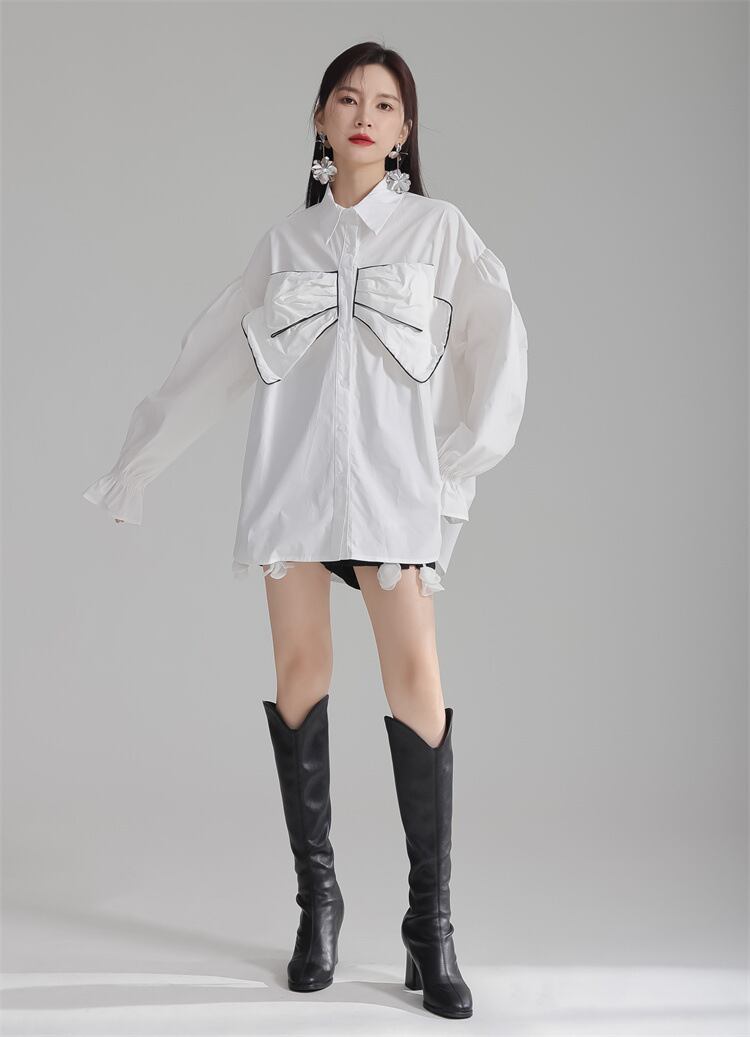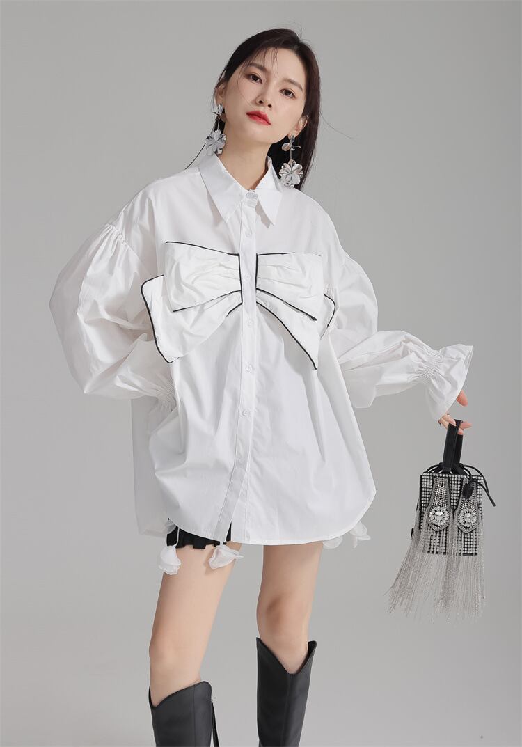 2色 ブラウス スピーカースリーブ リボン飾り 長袖 レディース