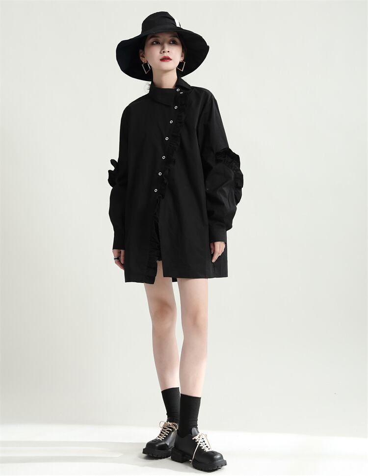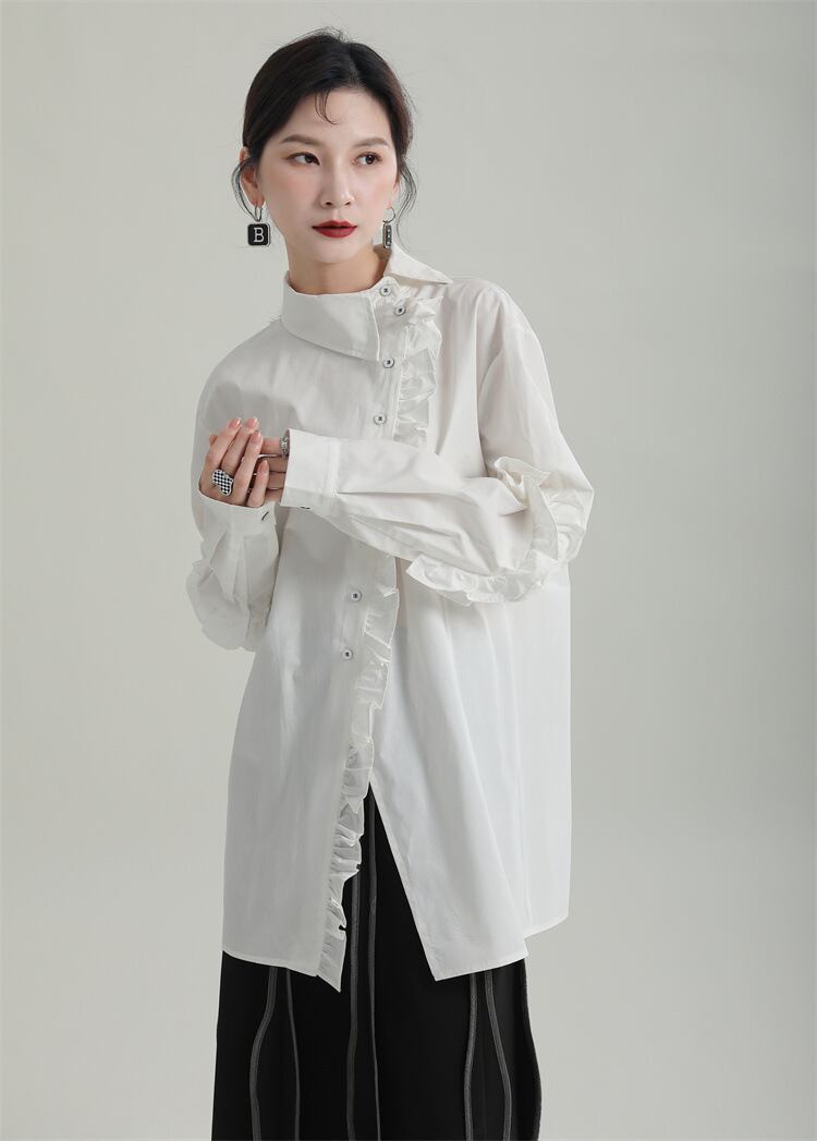 2色 ブラウス 長袖 不対称 トップス オリジナル