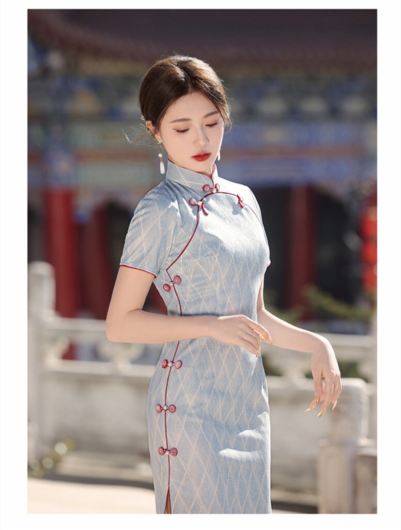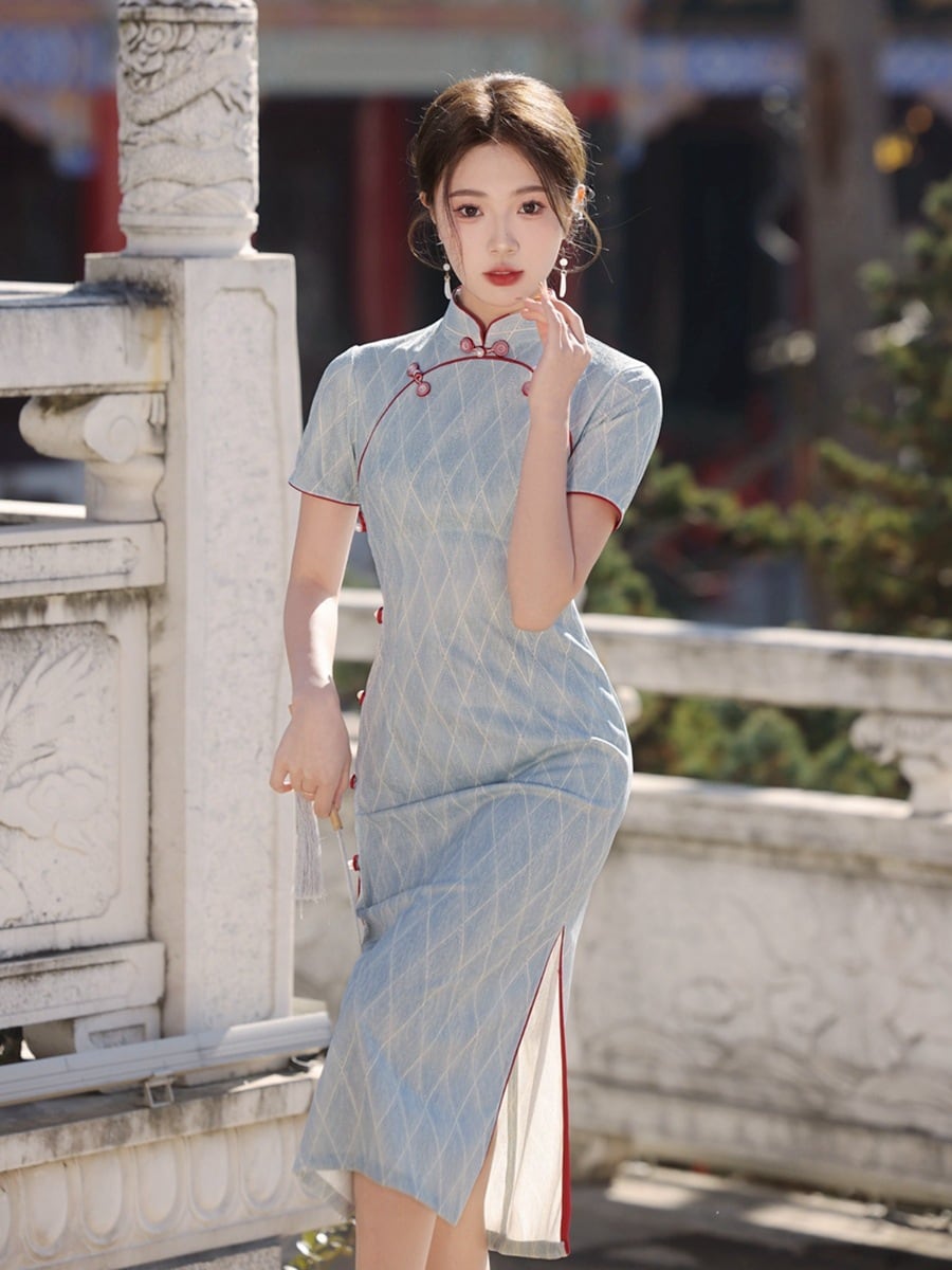 エレガント チャイナドレス 半袖 綺麗め チャイナ服 チャイナボタン オリジナル