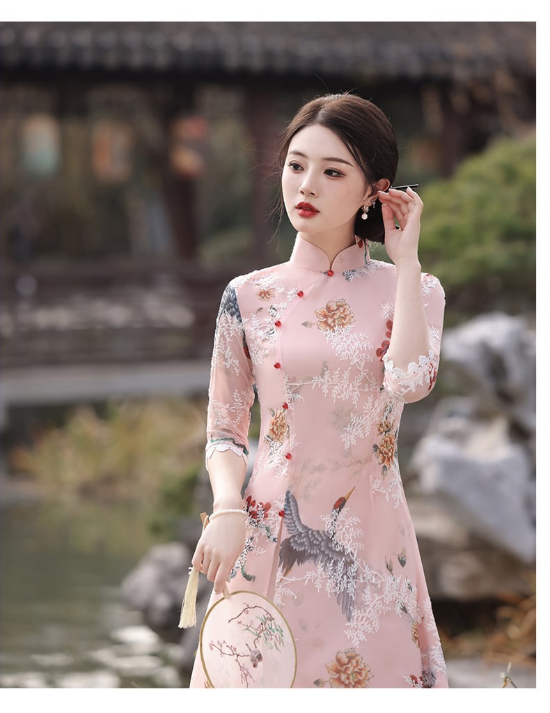 アオザイ ベトナム 民族風 ロングドレス サイドスリット 五分袖 スタンドネック 二次会 謝恩会 お呼ばれ 大きいサイズ