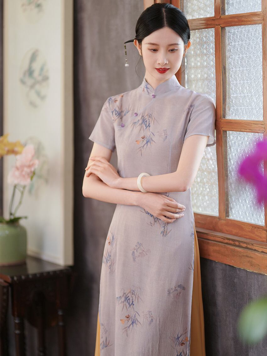 エレガント アオザイ 民族服 ロングドレス パープル 二次会 謝恩会 お呼ばれ 大きいサイズ