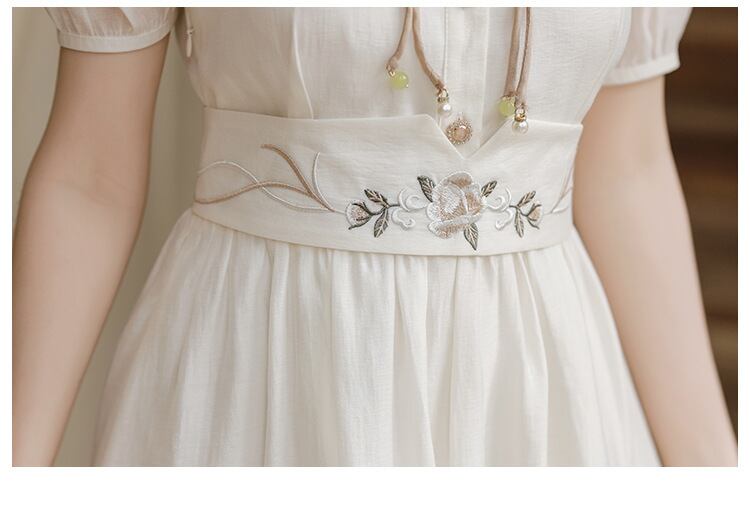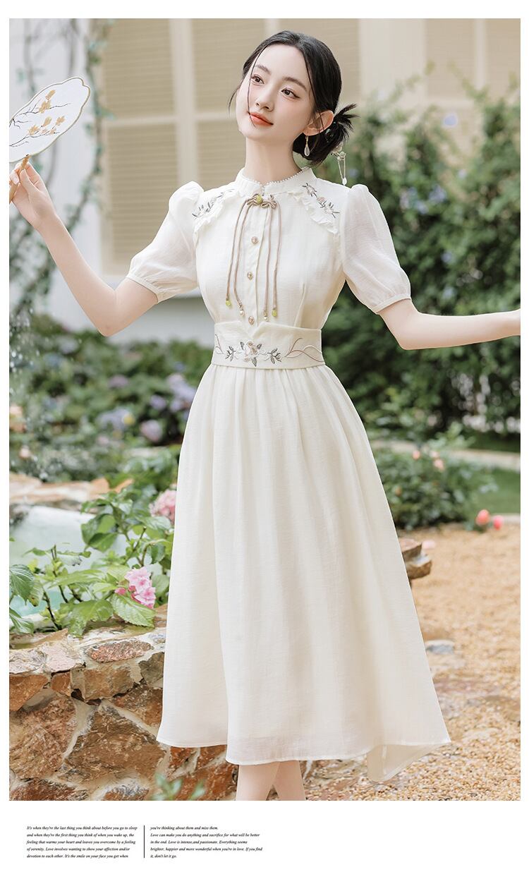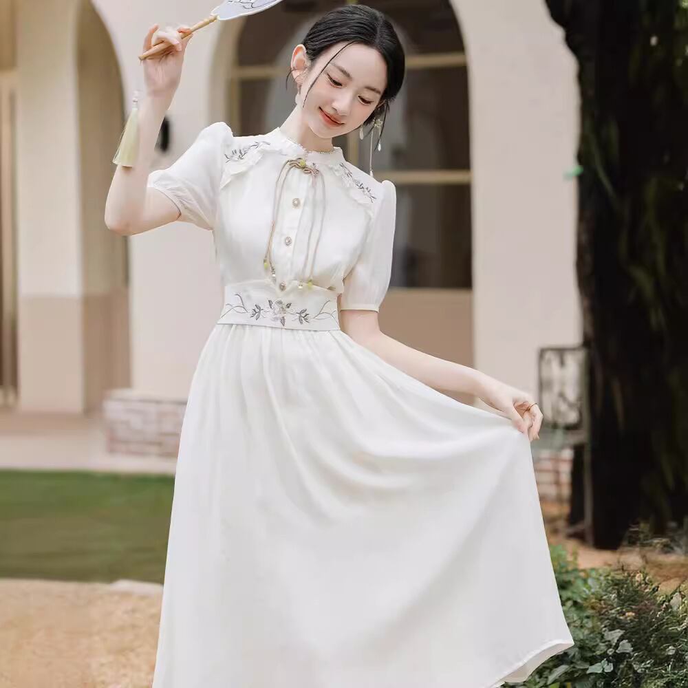 刺繍 チャイナ風ワンピース 半袖 ハイウェスト チャイナ風服 綺麗め