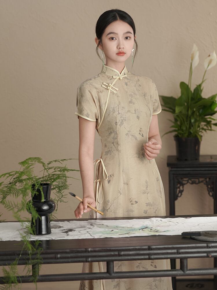アオザイ 民族服 半袖 プリント チャイナ服 着心地抜群 綺麗め 大きいサイズ