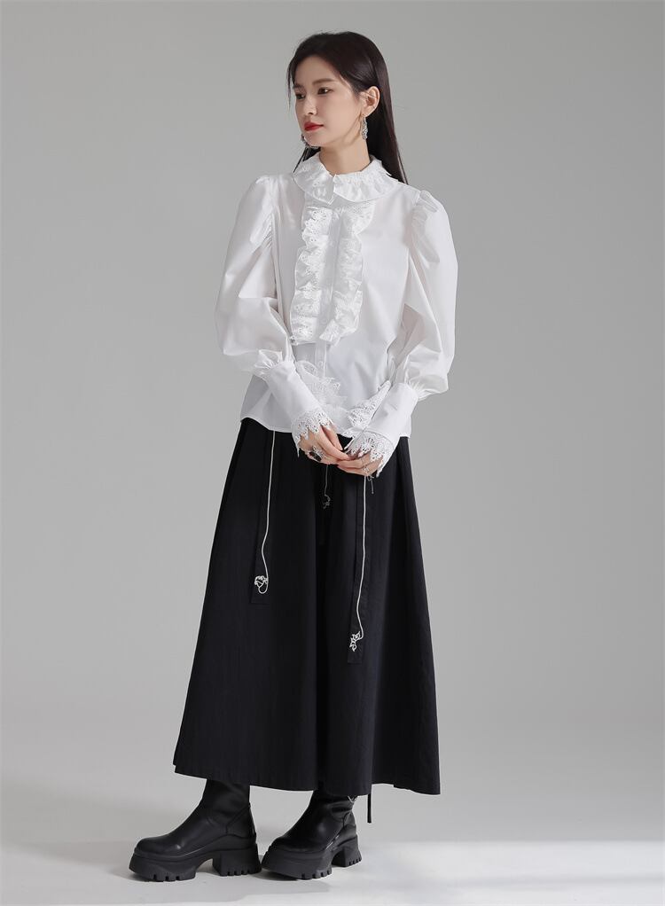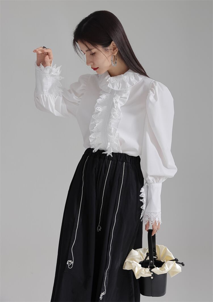 2色 ブラウス 長袖 レース パフスリーブ 綺麗め 着痩せ