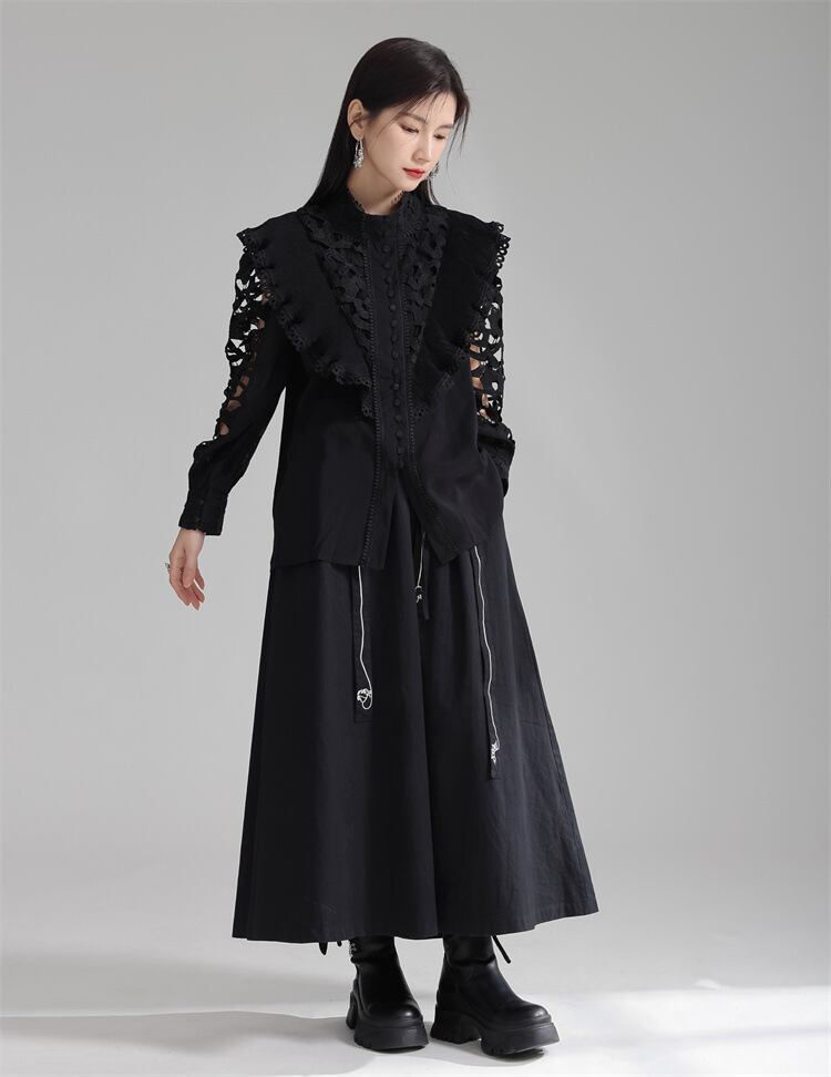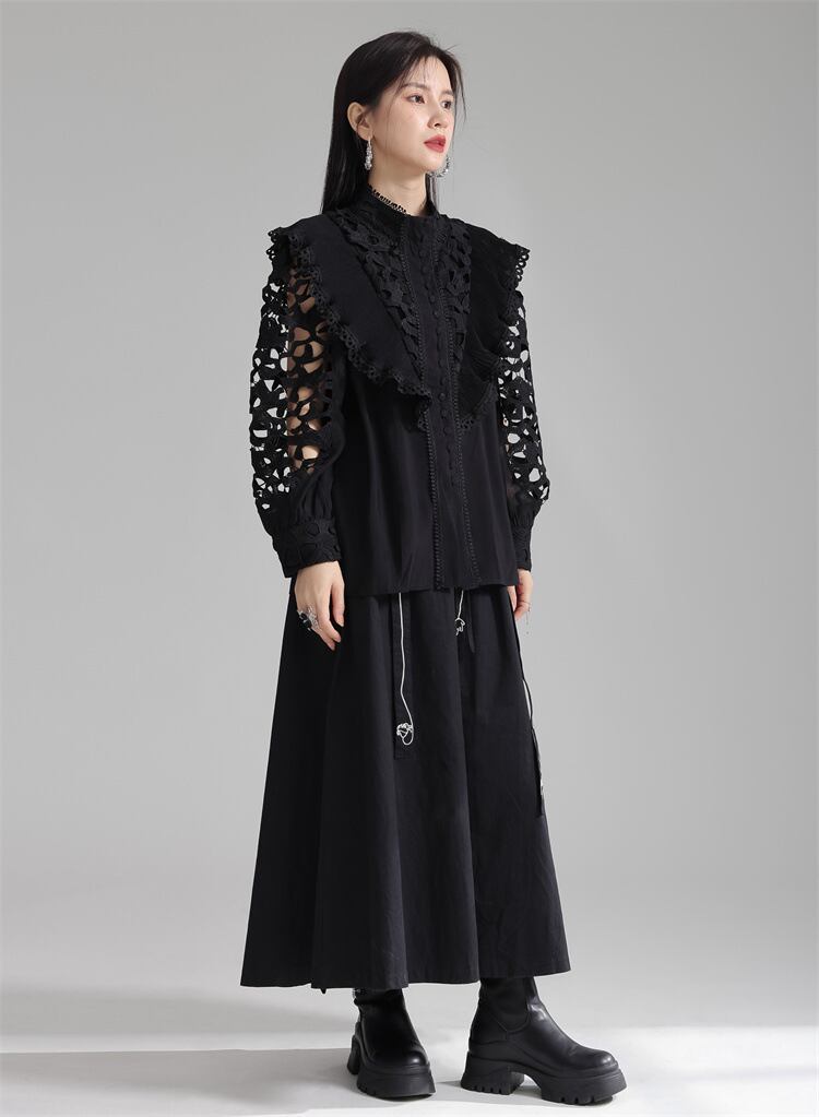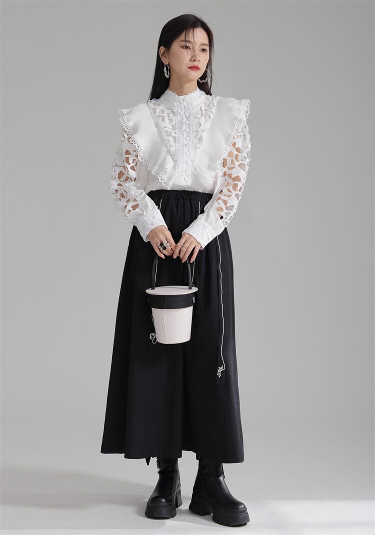 2色 透かし彫り ブラウス 長袖 スタンドネック 綺麗め オシャレ