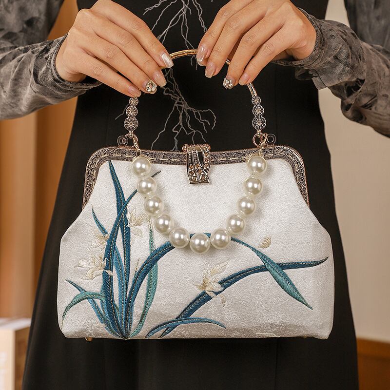 2色 刺繍 バッグ チャイナ風バッグ パーティーバッグ 手持ちバッグ クラッチバッグ
