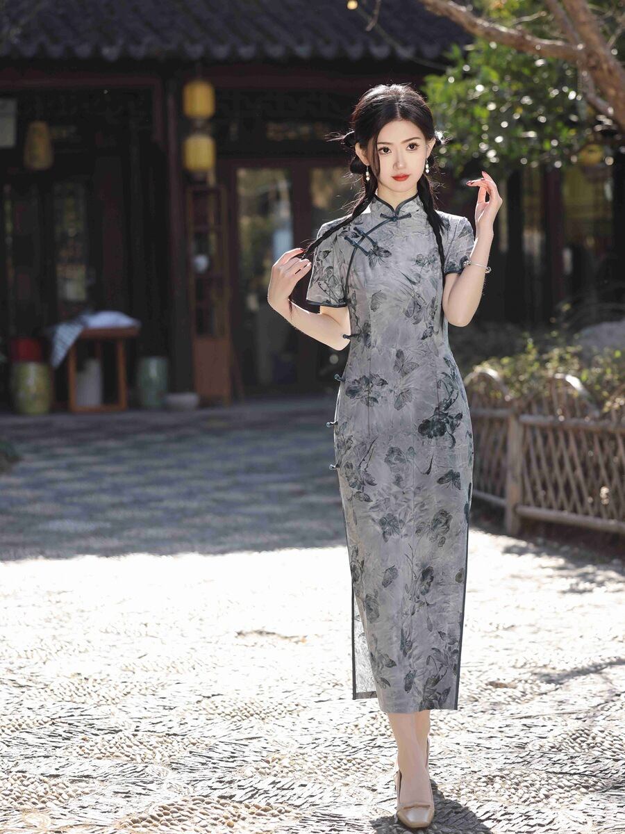 エレガント チャイナドレス チャイナ風服 サイドスリット チャイナボタン 綺麗め 大きいサイズ