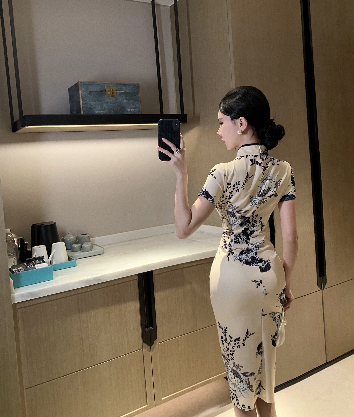 龍柄 チャイナドレス ハイウェスト 洋服 可愛い チャイナ服 改良型チャイナドレス