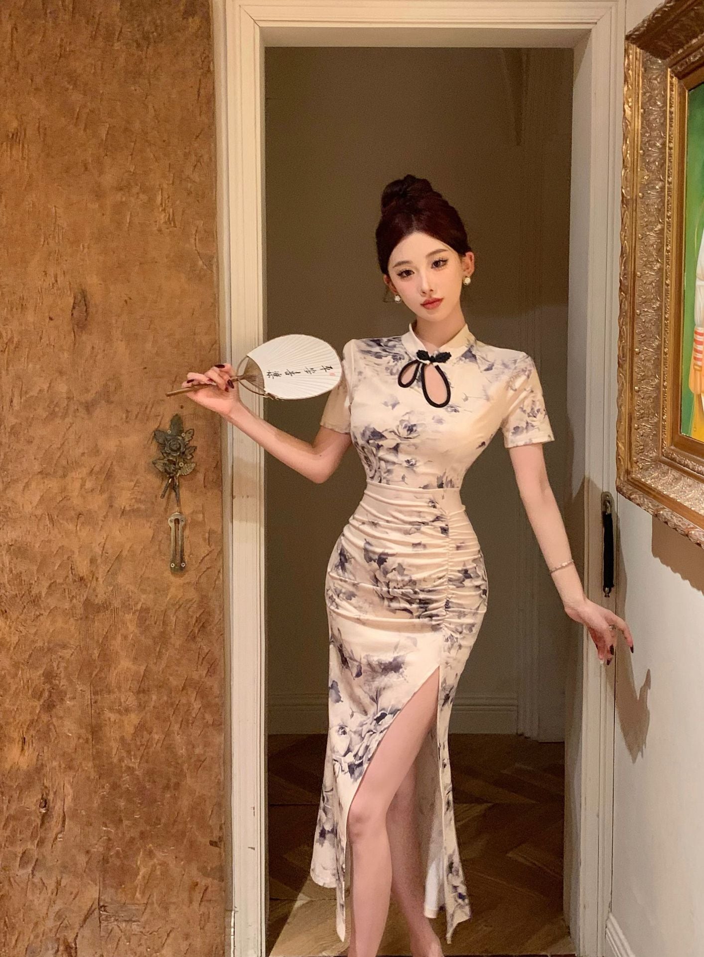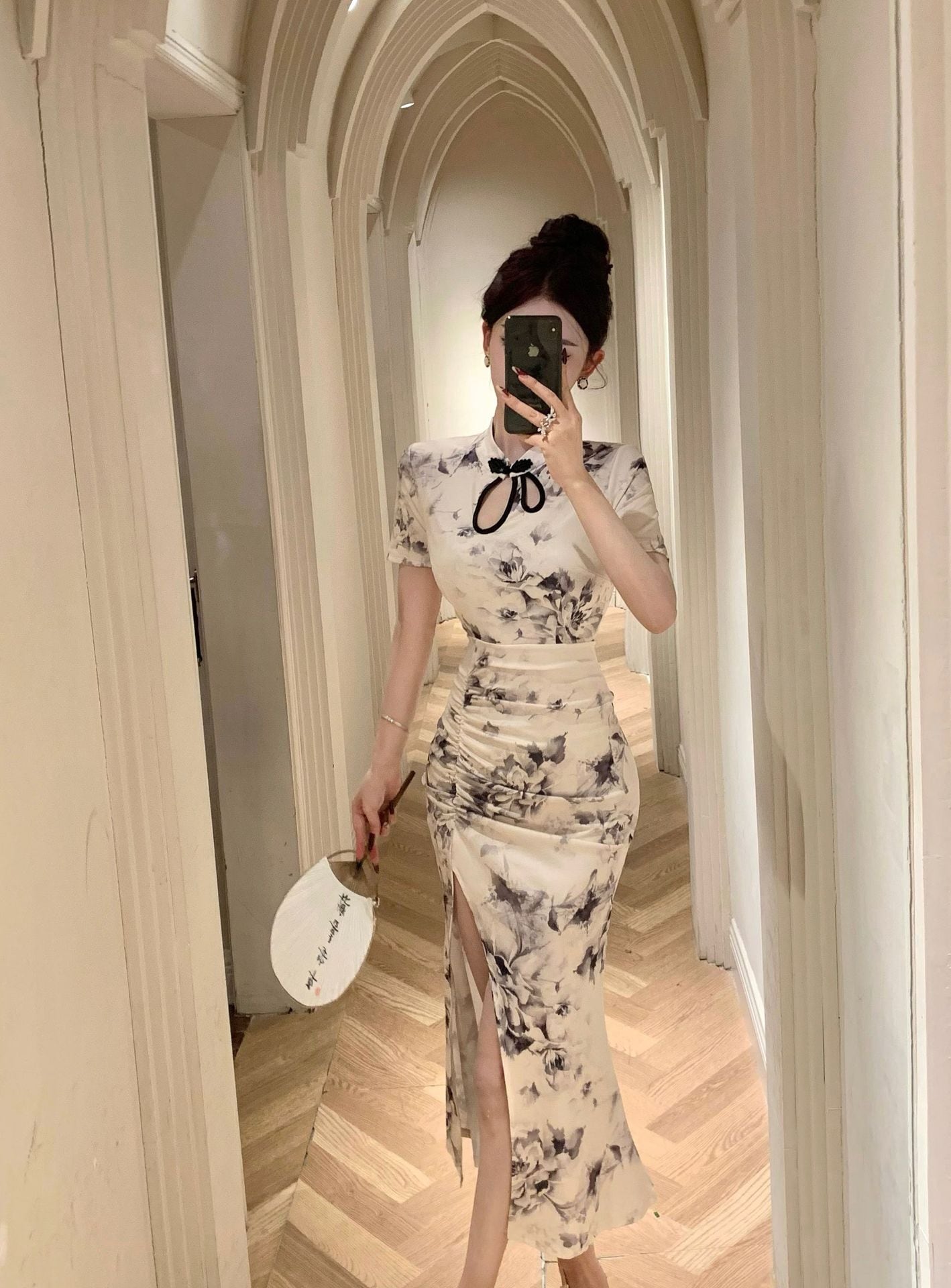 改良型チャイナドレス ハイウェスト サイドスリット 洋服 可愛い チャイナ服