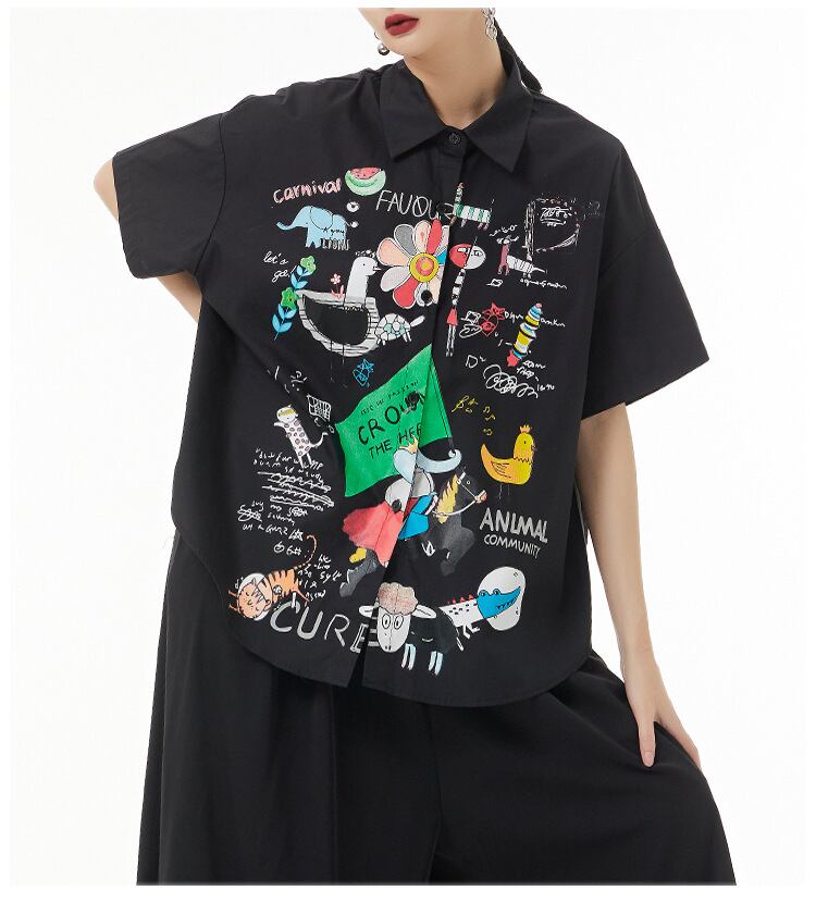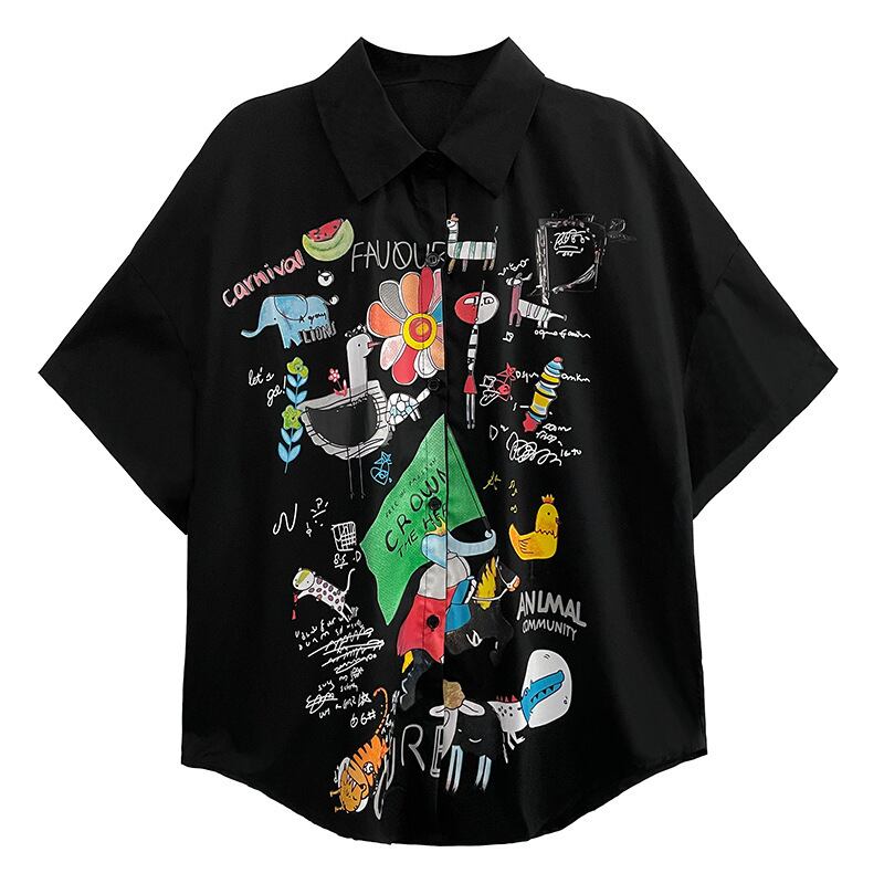 2色 ブラウスプリント 半袖 折り襟 綺麗め 着痩せ