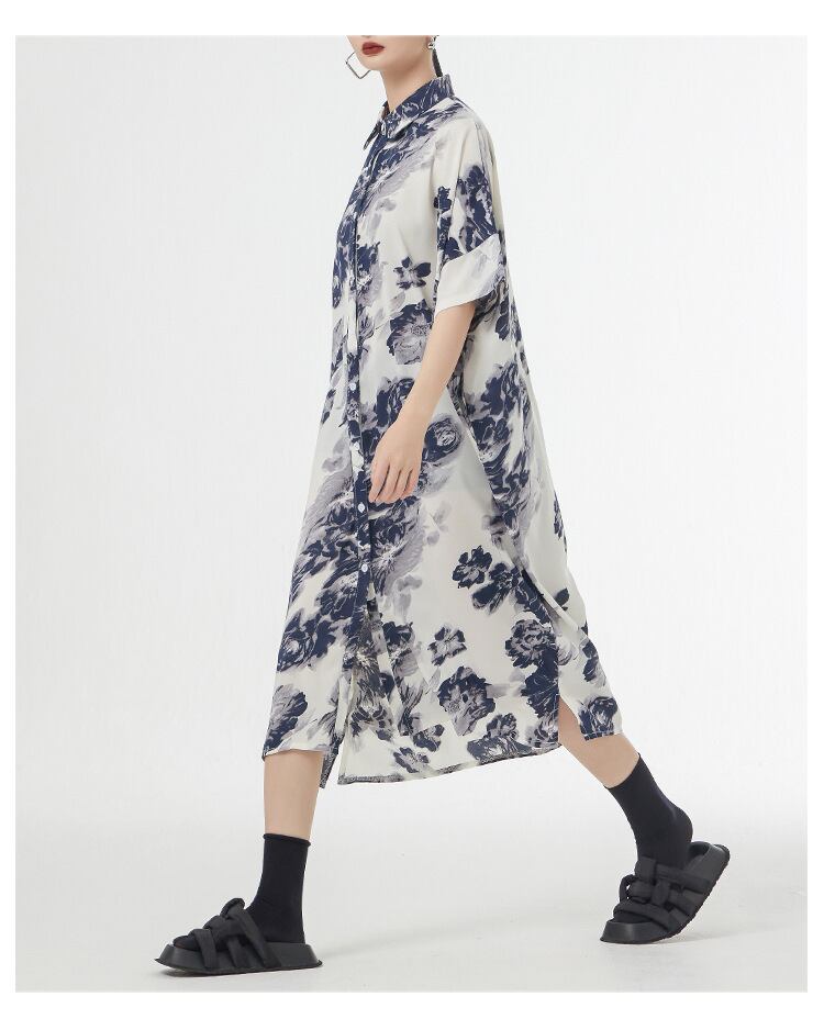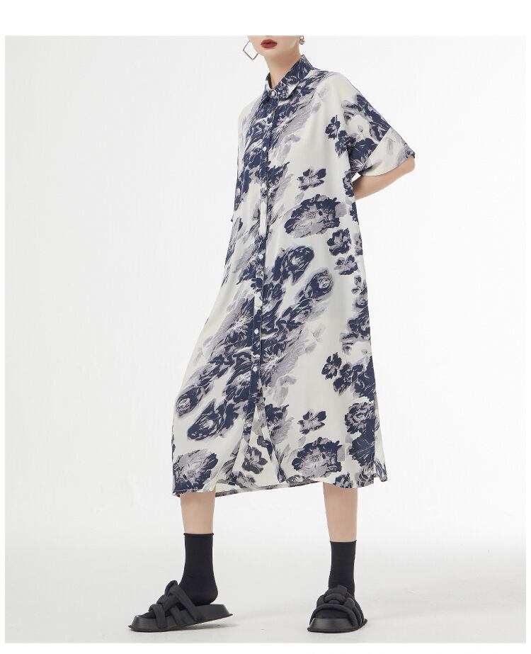 2色 シャツワンピース 半袖 オリジナル フレアワンピース