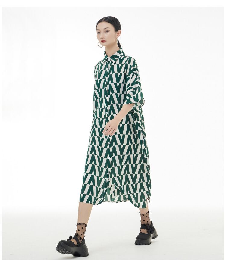 2色 シャツワンピース 半袖 オリジナル 着痩せ ワンピース