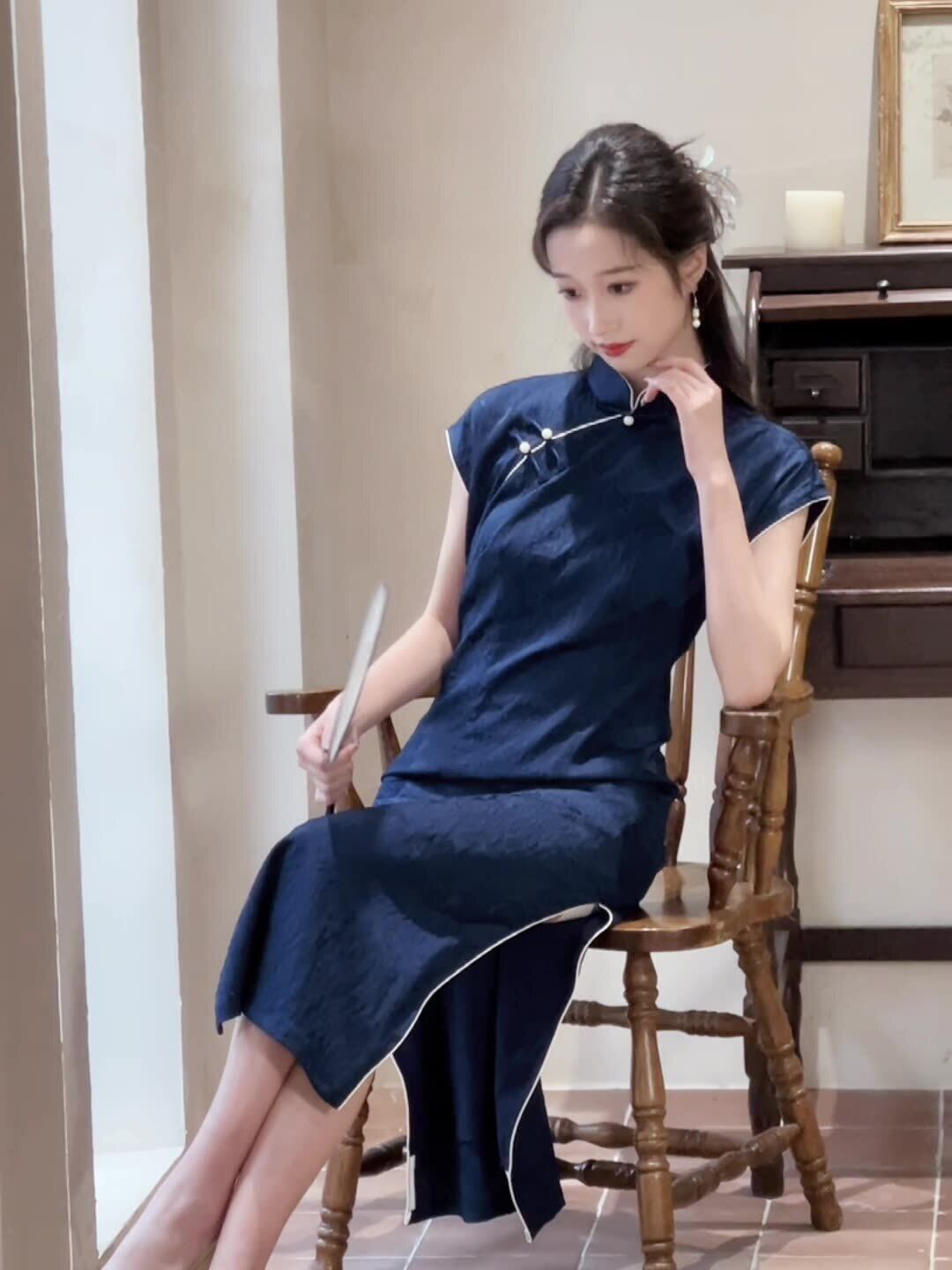 エレガント チャイナドレス スタンドネック サイドスリット 綺麗め チャイナボタン チャイナ服 大きいサイズ