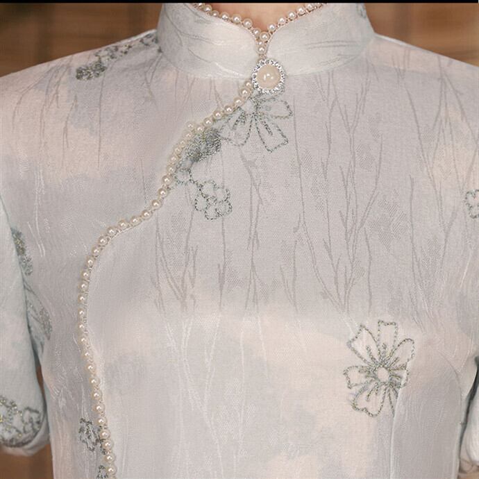 アオザイ 改良型チャイナドレス スタンドネック 半袖 洋服 綺麗め