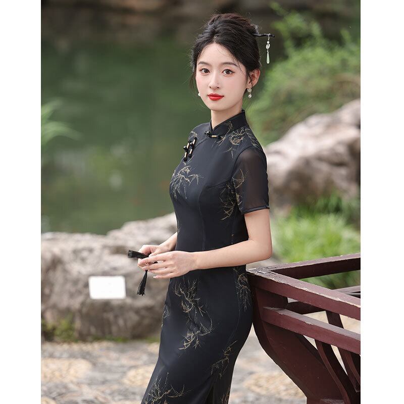 エレガント チャイナドレス スタンドネック 半袖 洋服 綺麗め