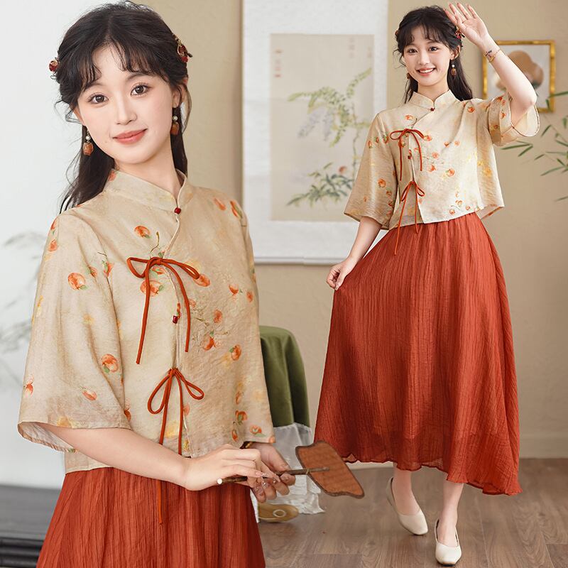 チャイナ風服 二点セットアップ トップス+スカート 綺麗め