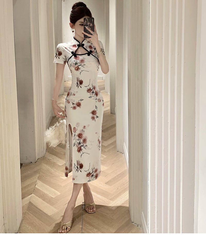 改良型チャイナドレス チャイナ風ワンピース ハイウェスト 綺麗め 着痩せ サイドスリット