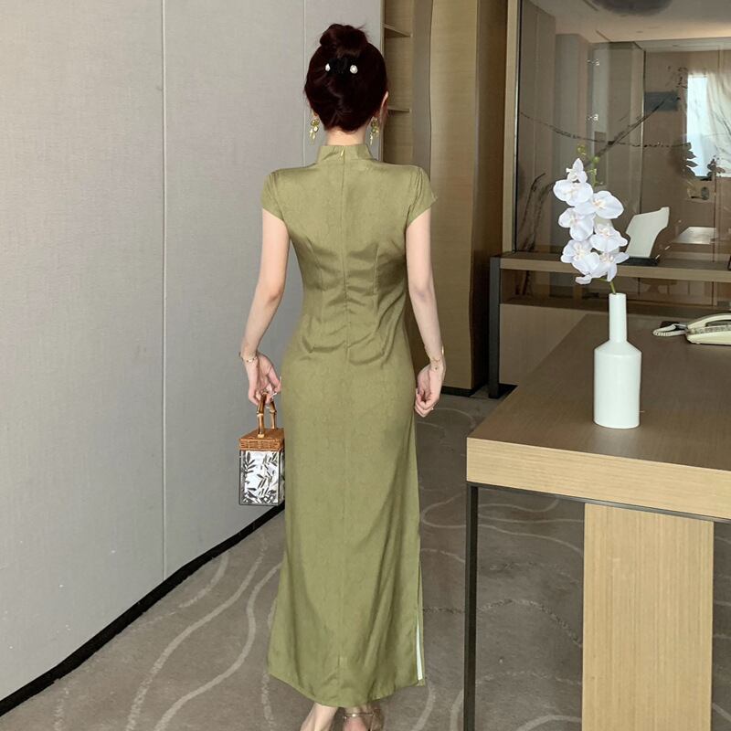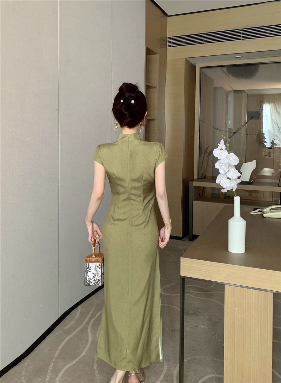 チャイナ風ワンピース ハイウェスト チャイナボタン 綺麗め 着痩せ サイドスリット 洋服