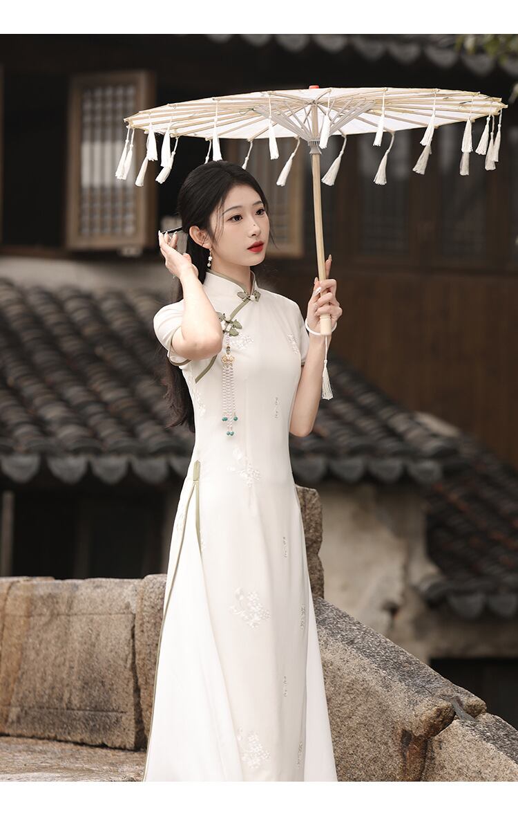 エレガント アオザイ 改良型チャイナドレス スタンドネック 半袖 洋服 綺麗め