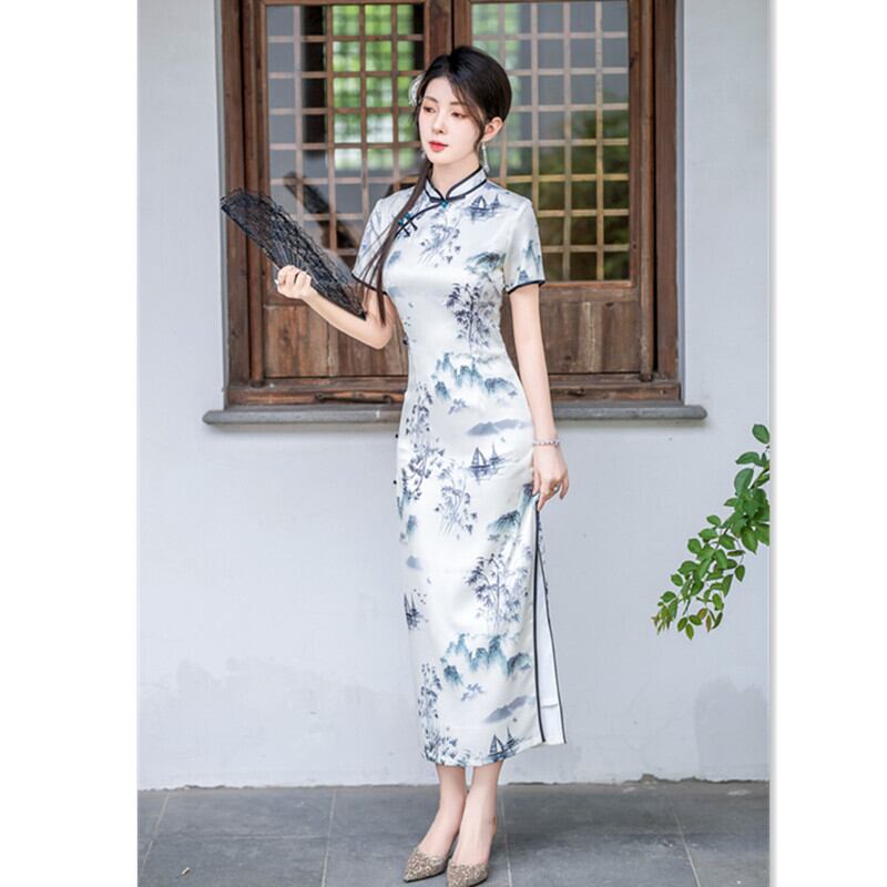 エレガント チャイナドレス スタンドネック半袖 洋服 綺麗め 大きいサイズ