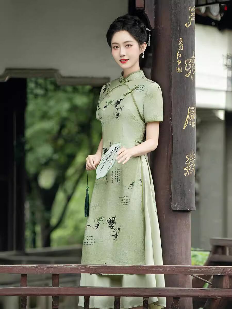 アオザイ 改良型チャイナドレス スタンドネック 洋服 綺麗め 大きいサイズ