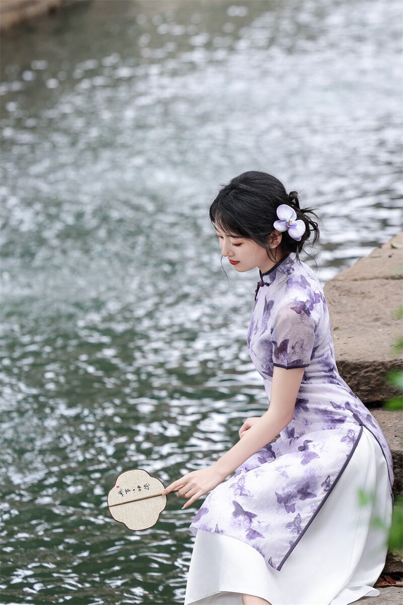 パープル アオザイ 改良型チャイナドレス スタンドネック 洋服 可愛い 綺麗め 大きいサイズ