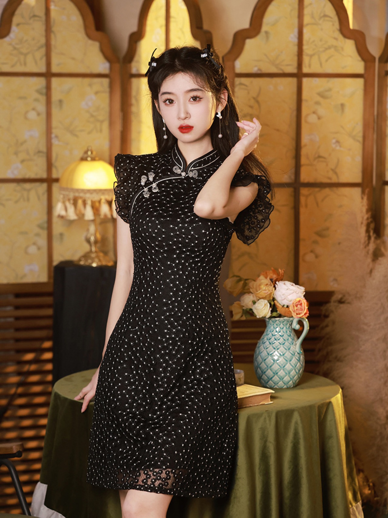 可愛い チャイナ風ワンピース アオザイ スタンドネック 洋服 綺麗め 大きいサイズ