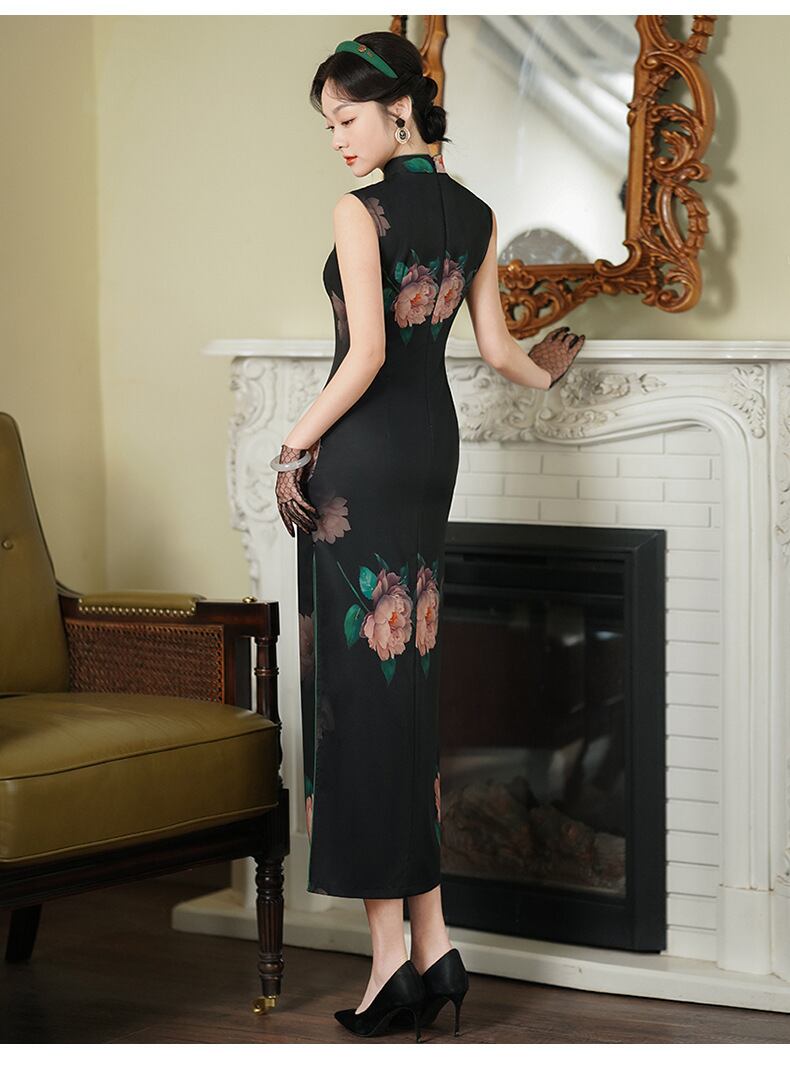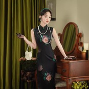 チャイナドレス スリーブレス チャイナボタン 洋服 綺麗め 女らしい チャイナ服