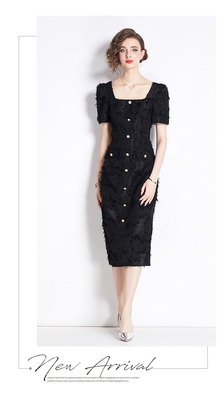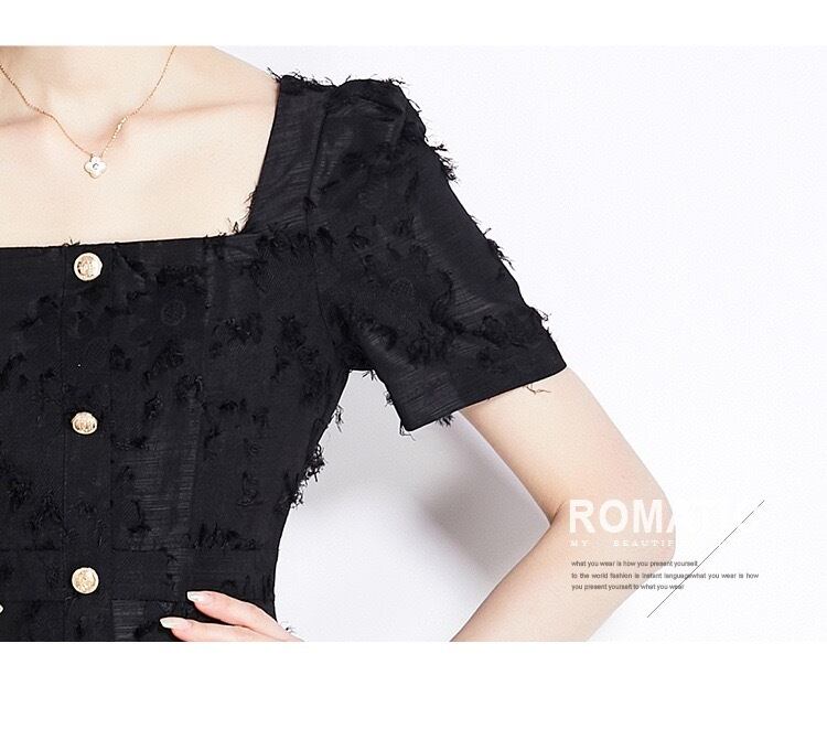 エレガントワンピース Aライン スクエアネック 半袖 綺麗め 大きいサイズ