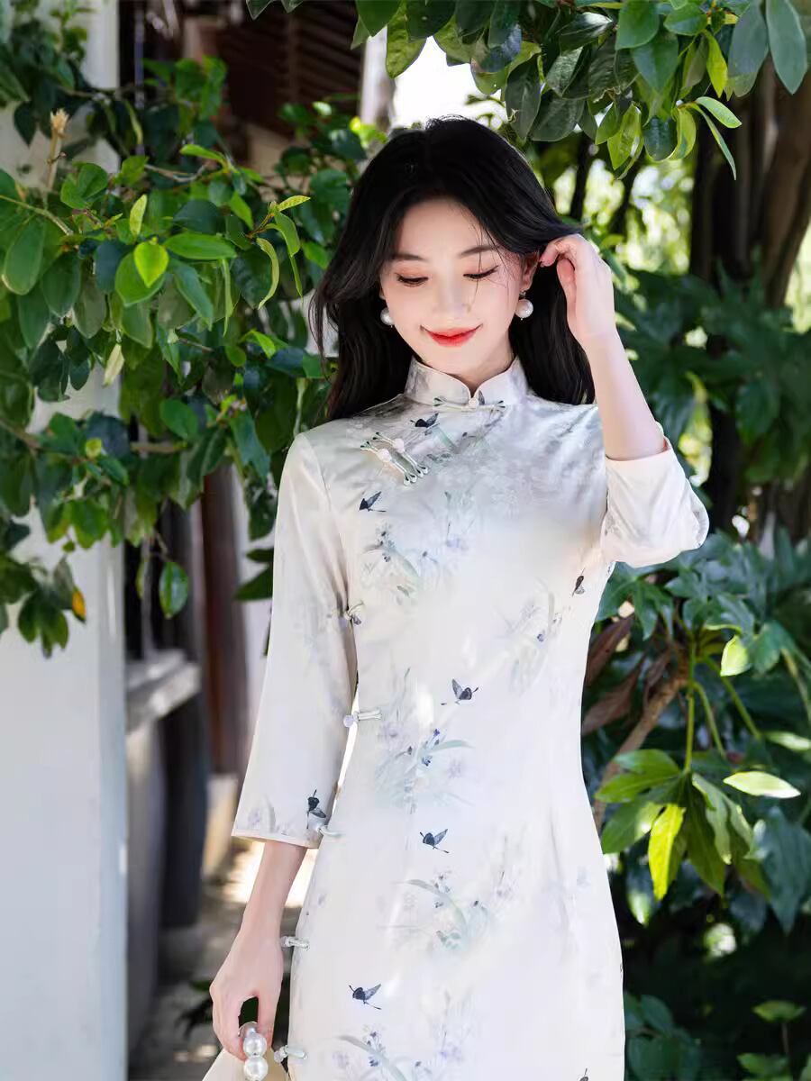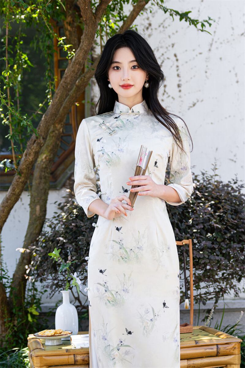 エレガント チャイナドレス 七分袖 チャイナ服 チャイナボタン 大きいサイズ