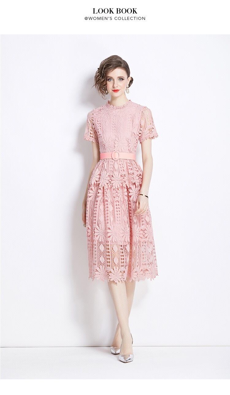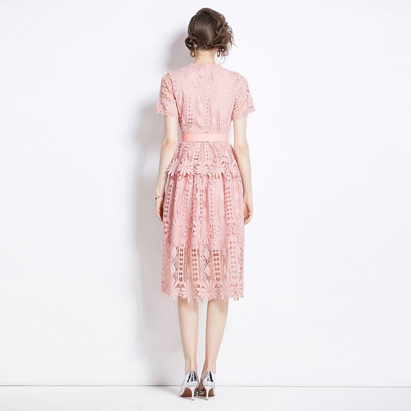 エレガント レース ピンク ワンピース Aライン 半袖 綺麗め 大きいサイズ