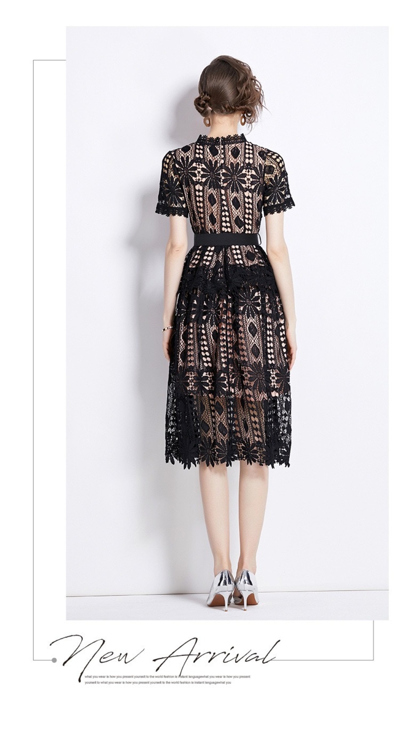 ブラック レース ワンピース Aライン 半袖 綺麗め 大きいサイズ