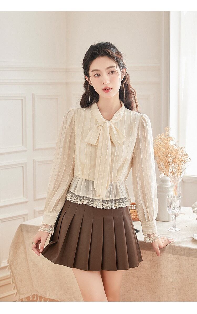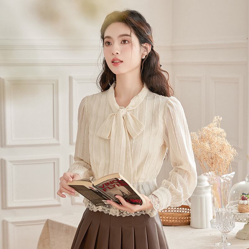 かわいい ブラウス 長袖 リボンネック 綺麗め 女らしさ