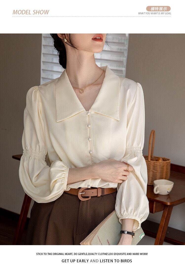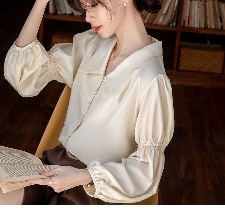 折り襟 ブラウス 長袖 チャイナボタン 綺麗め 女らしさ