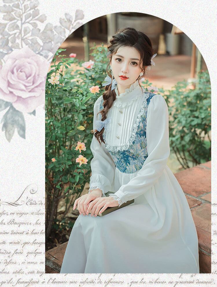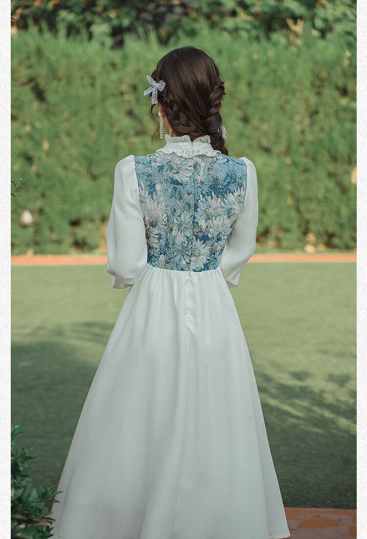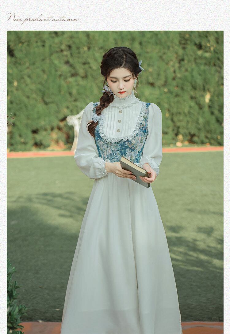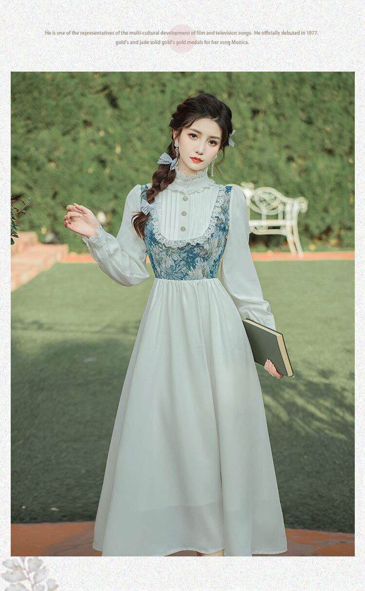 スタンドネック ワンピース 長袖 ハイウェスト きれいめ ロングワンピース