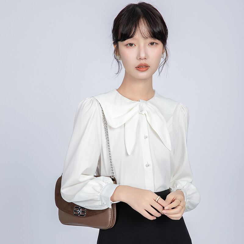 シンプル 丸襟 ブラウス 長袖 通勤 OL