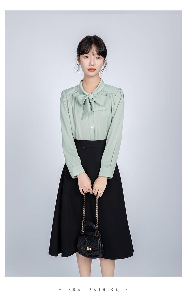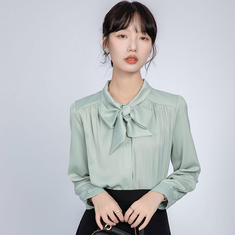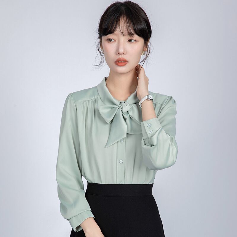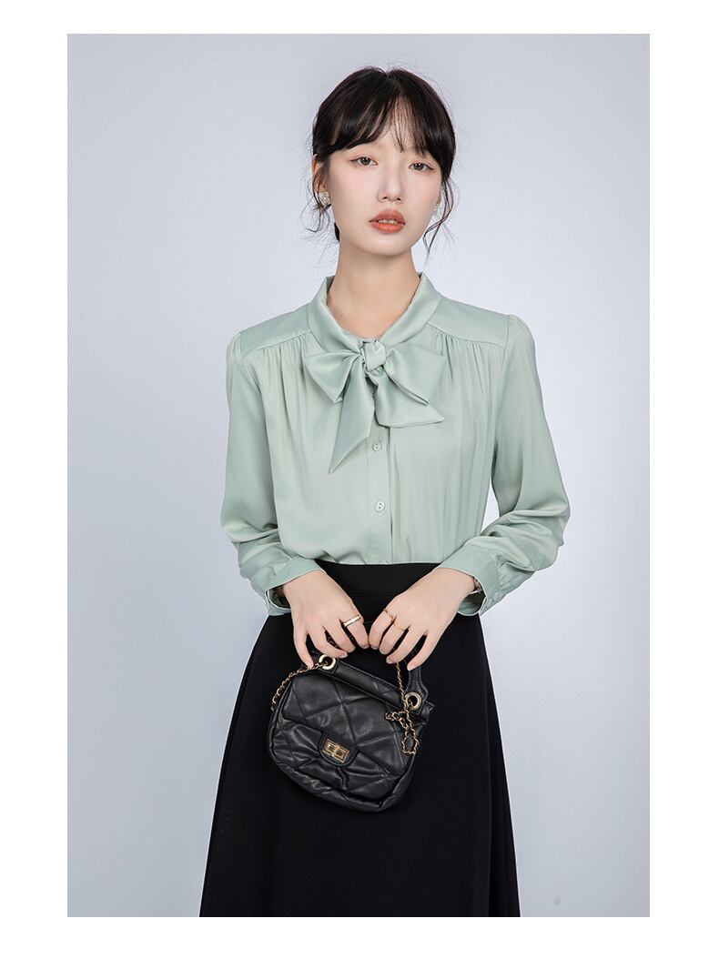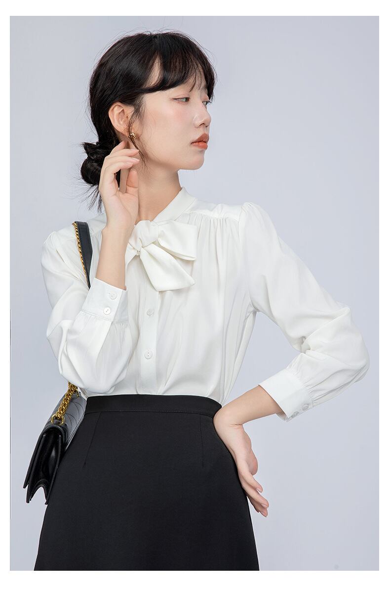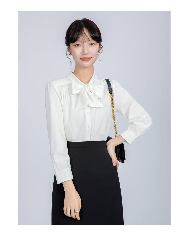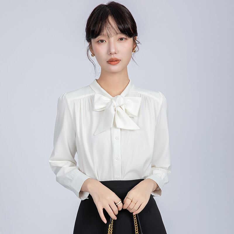 シンプル リボンネック ブラウス 2色 長袖 通勤 OL