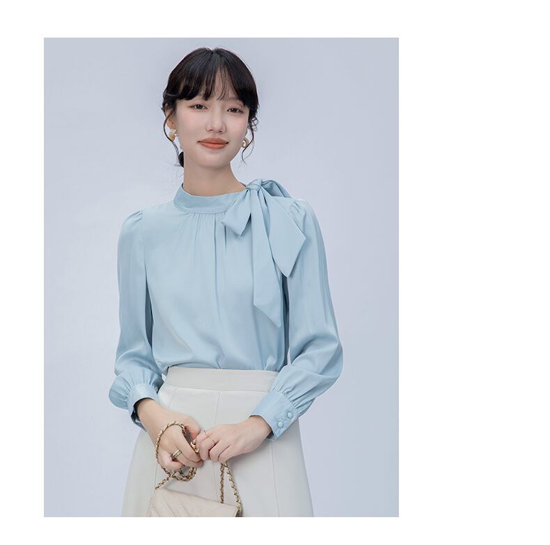 エレガント ブラウス リボン飾り 2色 長袖 通勤 OL