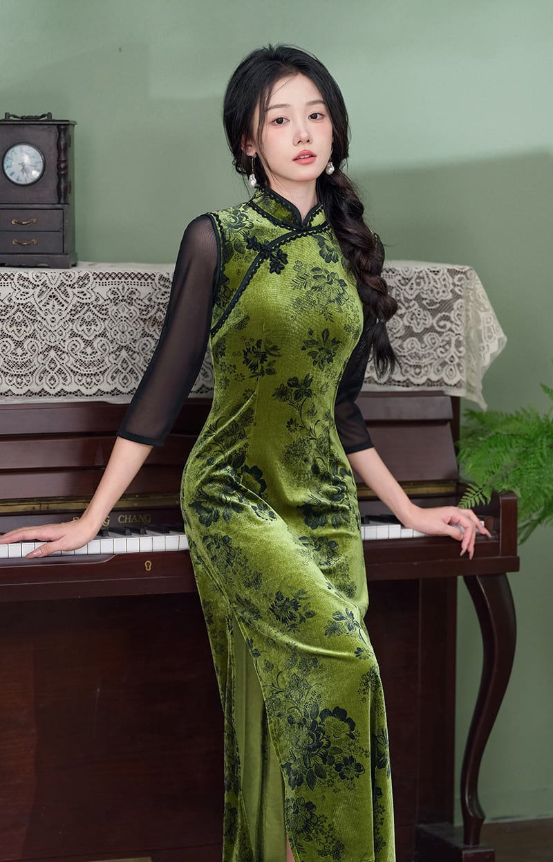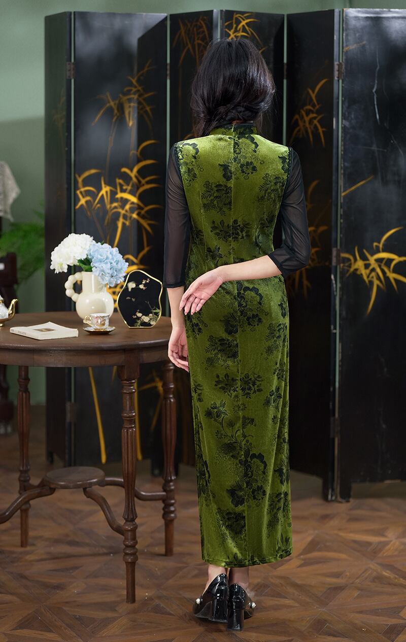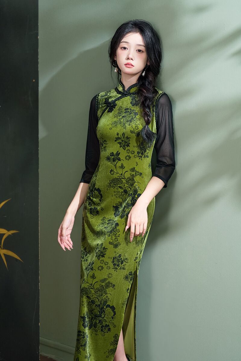 エレガント チャイナドレス 長袖 チャイナ服 チャイナボタン 綺麗め 女らしい 大きいサイズ