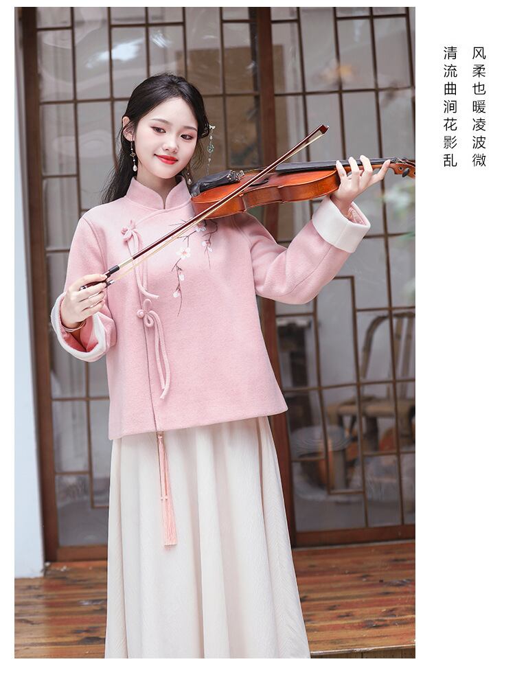 梅 チャイナ風服 コート+スカート 二点セットアップ 漢服 チャイナ服 大きいサイズ 綺麗め